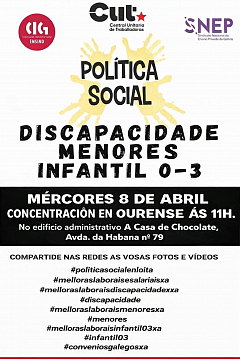Mañá terá lugar outro "Mércores de loita" nos centros de traballo de atención a menores, discapacidade e infantil 0-3 anos, previo á concentración do 8 de abril en Ourense