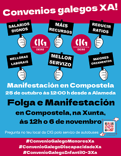 Está prevista unha manifestación nacional en Compostela o día 25 de outubro coa intención de presionar á Consellaría de Política Social para que, xunto coas patronais, escoite os tres sectores e abra o Marco Galego de Relacións Laborais
