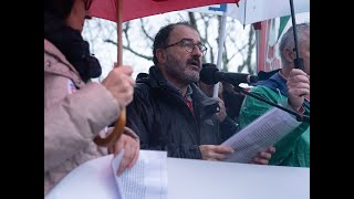 Delegadas da Área Pública da CIG concentráronse esta mañá diante do Parlamento de Galiza coincidindo coa aprobación no Pleno do Parlamento dos Orzamentos Xerais da Xunta para o ano que vén.