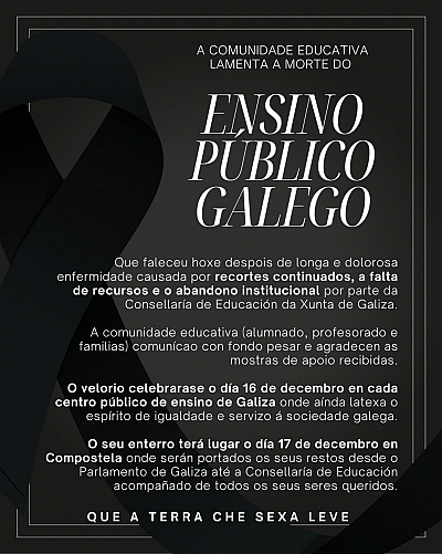 Decembro negro de mobilizacións que culmirán co velorio e enterro simbólicos do ensino público galego nas xornadas de folga do 16 e 17 de decembro