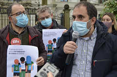 Representantes sindicais xunto co resto de promotores das "Bases para a normalización do ensino en Galiza" referíronse aos datos do IGE de que 1 de cada 4 menores de 15 anos non sabe falar galego, consecuencia directa do Decreto de plurilingüismo
