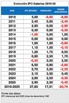 A CIG-Ensino alégrase de que a Consellaría regularizara o incremento na titoría e nos sexenios despois de reclamarllo hai un ano e lamenta que a suba dos salarios públicos siga por debaixo do IPC sumando unha perda do 20% de poder adquisitivo desde 2010