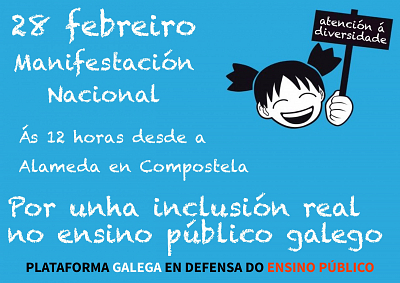 A Plataforma Galega en Defensa do Ensino Público convoca manifestación nacional o 28 en Compostela en demanda de medidas para atender a diversidade