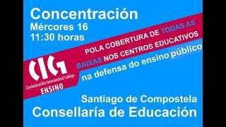 Delegadas e delegados da CIG-Ensino concéntranse diante da Consellaría de Educación solicitando a cobertura de todas as baixas nos centros educativos