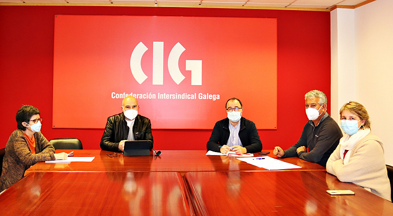 Os responsábeis das federacións de Área Pública da CIG, Suso Bermello, da CIG-Ensino; Xavier Picón, da CIG-Administración e María Xosé Abuín, da CIG-Saúde, celebraron esta mañá unha reunión de traballo co deputado do BNG, Néstor Rego, para dar traslado da posición do sindicato maioritario no conxunto das administracións públicas galegas sobre os orzamentos xerais do Estado (OXE) no que atinxe ás empregadas e empregados públicos