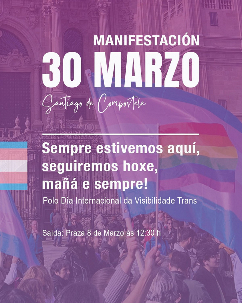 Mais para que estas medidas poidan ser levadas á práctica cómpre unha actitude militante individual e colectiva diante da transfobia enfrontando todas as discriminacións ás que se enfrontan as persoas trans, así como para darlle visibilidade a súa existencia e a loita das persoas tranxénero ao longo da historia. Con ese fin, facemos un chamamento para demandar tamén nas rúas a igualdade de dereitos e oportunidade para todas as persoas.