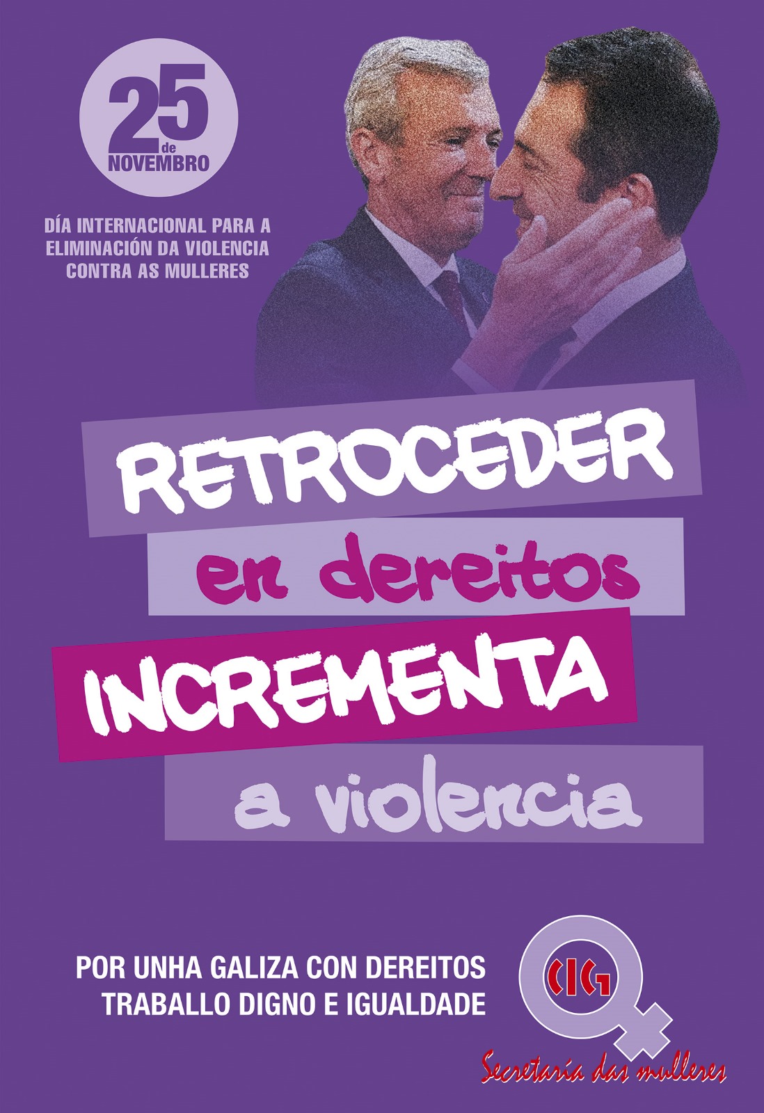 Este 25 de Novembro, Día internacional para a eliminación da violencia contra as mulleres, a secretaría das Mulleres da CIG lanza unha campaña para denunciar a permisividade das condutas machistas nas institucións públicas, reclamar que se revertan os recortes en materia de igualdade aplicados pola Xunta de Galiza e a posta en marcha dun plan galego pola igualdade.