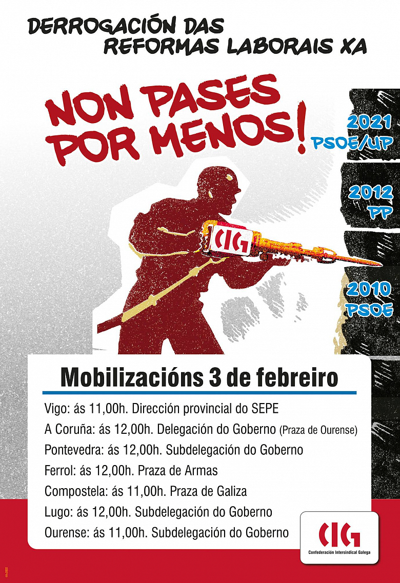 A CIG convoca concentracións este xoves 3 de febreiro para esixir a derrogación das reformas laborais