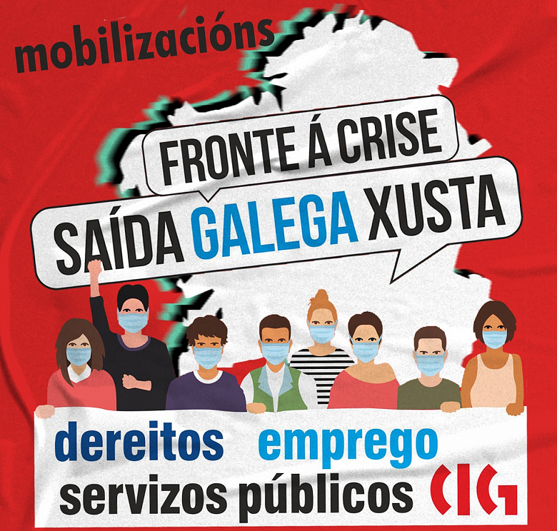 Desde a CIG, formulamos unha proposta con medidas concretas, para unha SAÍDA GALEGA XUSTA da crise. Unha saída da crise que tamén pasa pola loita, o combate e a mobilización, porque os dereitos conquístanse, non os regalan nin se mercan, nin se mercadea con eles nese invento do “diálogo social” que pretende suplantar o protagonismo da clase traballadora impoñendo antidemocraticamente medidas de recorte e facilitando solucións que favorecen o capital.