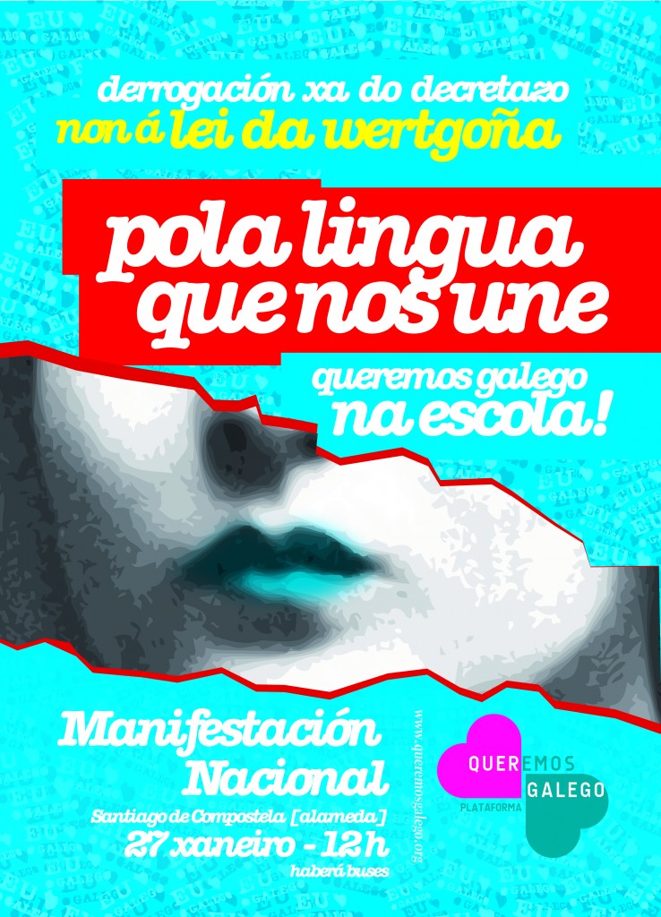 Queremos denunciar tamén a actitude do conselleiro de Educación de total complicidade e submisión ao Goberno central, que coa posta en marcha do anteproxecto da LOMCE pretende impornos unha lei reespañolizadora que uniformiza e centraliza o sistema educativo, afasta do ensino o estudo da nosa cultura, historia, xeografía, economía, etc. e establece un modelo lingüístico no cal se lle garante o descoñecemento do noso idioma ao alumando e se lle dá un tratamento secundario e de total submisión ao noso idioma. Un anteproxecto que, en definitiva, fai inviable calquera posibilidade de normalización lingüística e que o galego sexa a lingua vehicular do ensino.