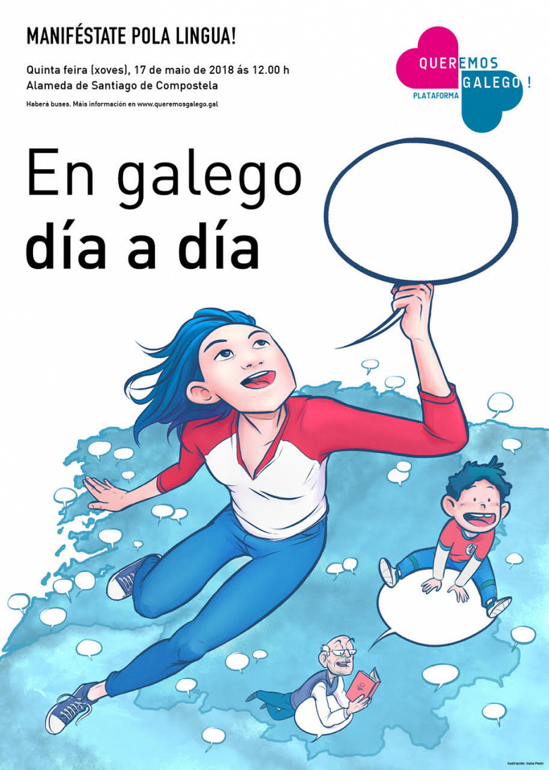 Á vista desta situación de perda de falantes e de acoso e derribo por parte da administración instamos á Xunta a aplicar o Plan Xeral de normalización lingüística aprobado por unanimidade polo Parlamento galego e a deixar as accións que son mera propaganda.