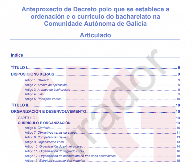 Dende a CIG-Ensino abrimos un prazo até o mércores día 1 de xuño, para recibir todas a achegas que queirades facernos (galiza@cig-ensino.gal) a fin de emendar o Anteproxecto, que se debaterá proximamente no Pleno do Consello Escolar de Galiza.