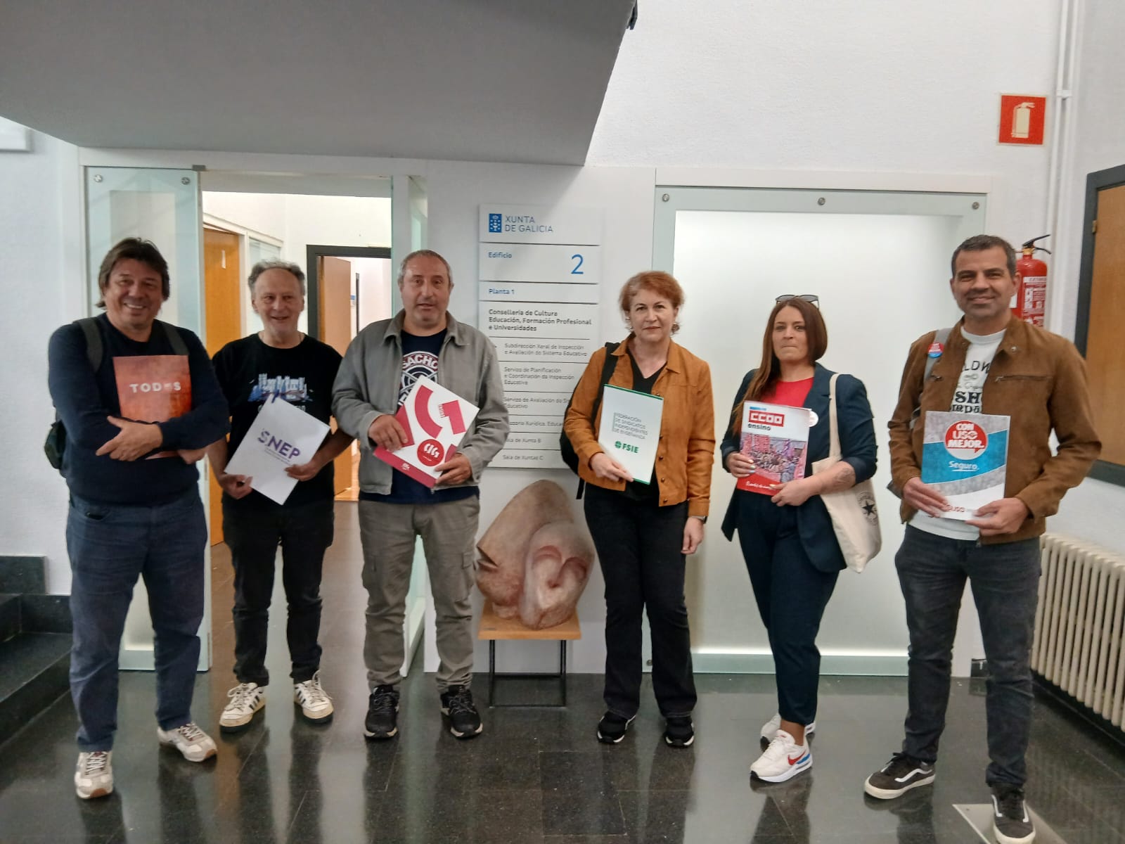 A CIG-Ensino e outras organizacións sindicais do ensino concertado fan entrega, no rexistro e na secretaría do conselleiro Román Rodríguez, dun escrito reivindicativo e de petición de convocatoria da Mesa tripartita