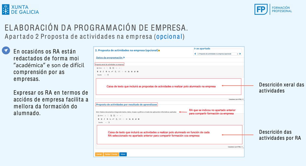 Ademais dos problemas que se produciron co cambio de aplicación para elaborar as programación didácticas e de que non exista currículo oficial dos novos módulos optativos nos ciclos medios e superiores, a estas alturas persisten aínda moitas dúbidas sobre o procedemento de avaliación e o desenvolvemento da fase de formación na empresa que pasa a ser curricular e non un módulo máis, como era a FCT. Con respecto a isto, a CIG-Ensino esixiu desde o primeiro momento un debate sosegado sobre onde e como situar a formación na empresa, tendo en conta que o número máximo de horas non debería superar as 500, rexeitando as 700 polas que optou a Consellaría, e que o alumnado que vaia en primeiro non vexa restado ese tempo do período total. O sindicato insiste en que esta formación debe adaptarse á planificación académica nos centros e non ao revés, para que as programacións didácticas e as avaliacións non sexan ficticias e irreais. Dada a especialización e o tamaño das empresas galegas (dun total de 234.980 rexistradas polo IGE en 2023, só 124 tiñan máis de 500 asalariados e asalariadas) o máis probábel é que o alumnado non adquira apenas ningún Resultado de Aprendizaxe ou moi poucos de todo o ciclo durante este período. O profesorado pide que se habilite unha solución realista e que non se vexa obrigado a mentir, ademais de resultar contraditorio o que se inclúe na Guía de avaliación, publicada con moito retraso, sobre a cualificación que obtería o alumnado no caso de non corresponderse ningún RA traballado na empresa cos módulos de segundo (levaría a cualificación da segunda avaliación parcial) co que acontecería se cursa esta formación en primeiro (a nota sería o resultado das actividades desenvolvidas na empresa). A CIG-Ensino considera que debe xeneralizarse a solución dada para os módulos de segundo e que debe facilitarse o máximo posíbel que as programacións de empresa, os acordos específicos e o plan individualizado de formación que haberá que realizar sexan o máis axustados á realidade e simplificados burocraticamente. Deben conter, iso si, a información relevante sobre normativa laboral que inclúe o artigo 156 do RD 659/2023 (circunstancias de rescisión do acordo, xornada e horario na empresa, compromiso de transparencia da empresa coa representación sindical e garantía de que o alumnado no substitúe postos de traballo).