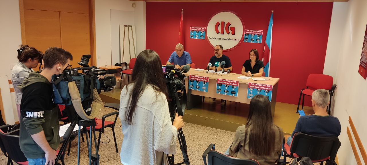 Así se puxo en evidencia nunha rolda de prensa na que responsábeis da CIG-Ensino presentaron unha valoración inicial deste arranque de curso e formularon unha esixencia clara e irrevogábel á Consellaría de Educación: ou hai unha proposta negociadora enriba da mesa antes de rematar o mes de setembro para recuperar o horario do profesorado previo aos recortes e para acometer a redución das ratios e a rebaixa das tarefas burocráticas ou o profesorado terá claro que ante o reiterado desprezo ao profesorado dos responsábeis políticos da Consellaría só caben mobilizacións contundentes, incluída unha folga que a CIG-Ensino está disposta a convocar, para a que se buscará o maior grao de unidade sindical e de resposta social do profesorado posíbeis, pero tamén a implicación de familias e alumnado por seren realmente as principais vítimas da privatización e dos recortes perpetrados pola Xunta no ensino público galego.
