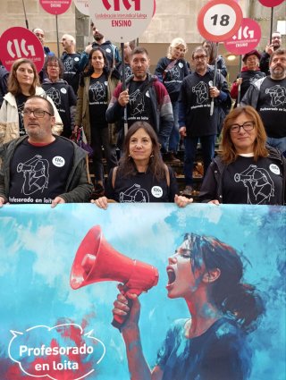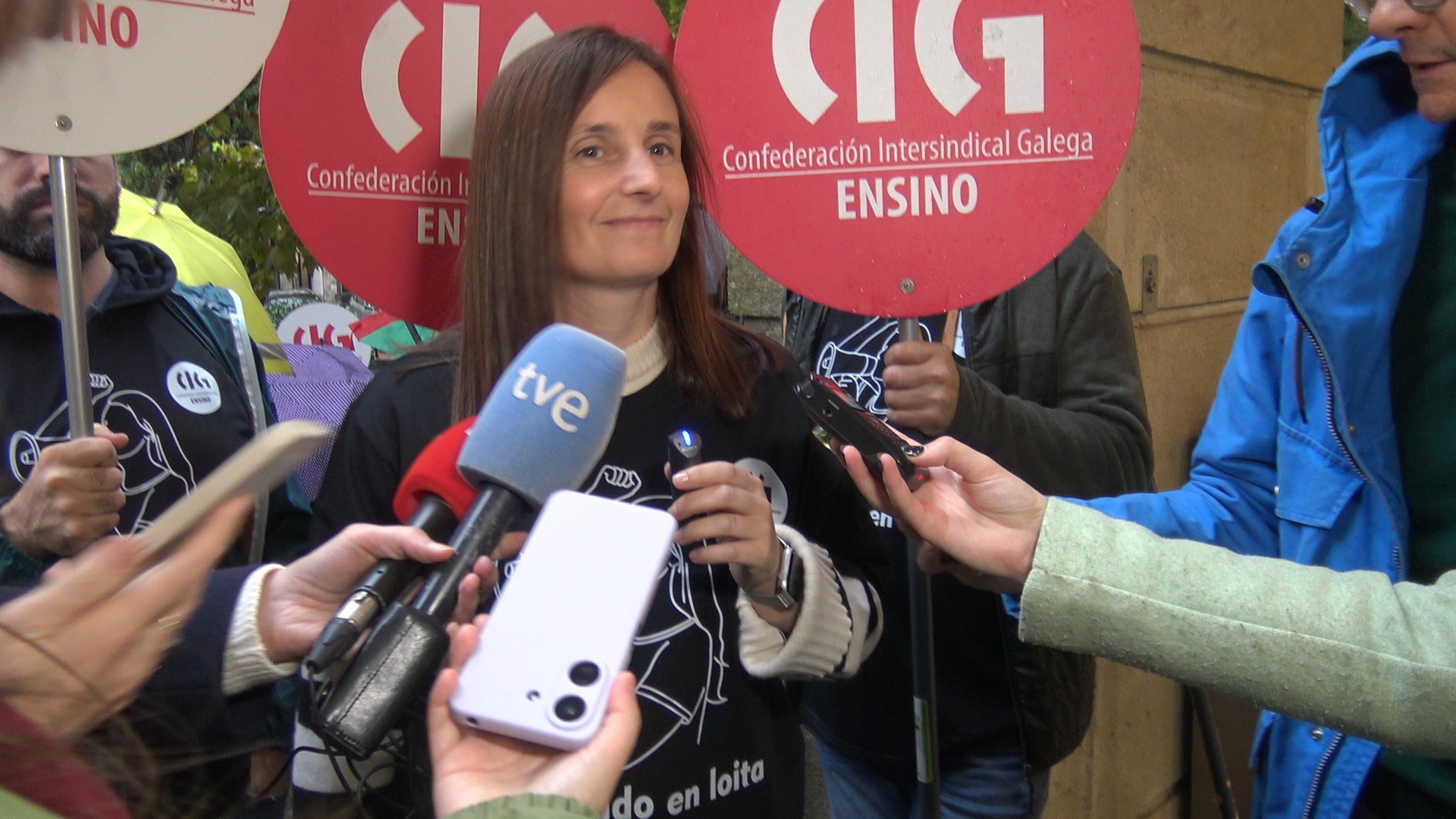 Delegados e delegadas da CIG-Ensino concentráronse esta mañá antes da celebración da Mesa Sectorial docente convocada pola Consellaría para analizar o borrador da Orde que regula o Concurso de traslados para o vindeiro curso 25/26 e da Orde que regula o concurso de postos de orientación para centros de infantil e primaria. Uns procedementos nos que na última convocatoria obtiveron praza un total de 2.568 docentes (1405 de Secundaria, 1109 de Primaria e 24 de Orientación). A concentración transcorreu en silencio emulando a resposta que obtiveron até o momento por parte da Consellaría de Educación á súa demanda de que se iniciase unha negociación real na que se abordasen melloras laborais e do sistema educativo público galego. Pasadas as mobilizacións de setembro e ás portas de dúas novas xornadas de folga os días 28 e 29 de outubro o sindicato maioritario no ensino público levou á Mesa Sectorial unha proposta que pretende ir no camiño de acadar estas melloras reais cunha maior dotación de persoal para atender á diversidade en todas as ensinanzas, que viría acompañada de tres medidas diferenciadas e que se poderían materializar en paralelo á convocatoria das vacantes previstas nestes dous concursos: