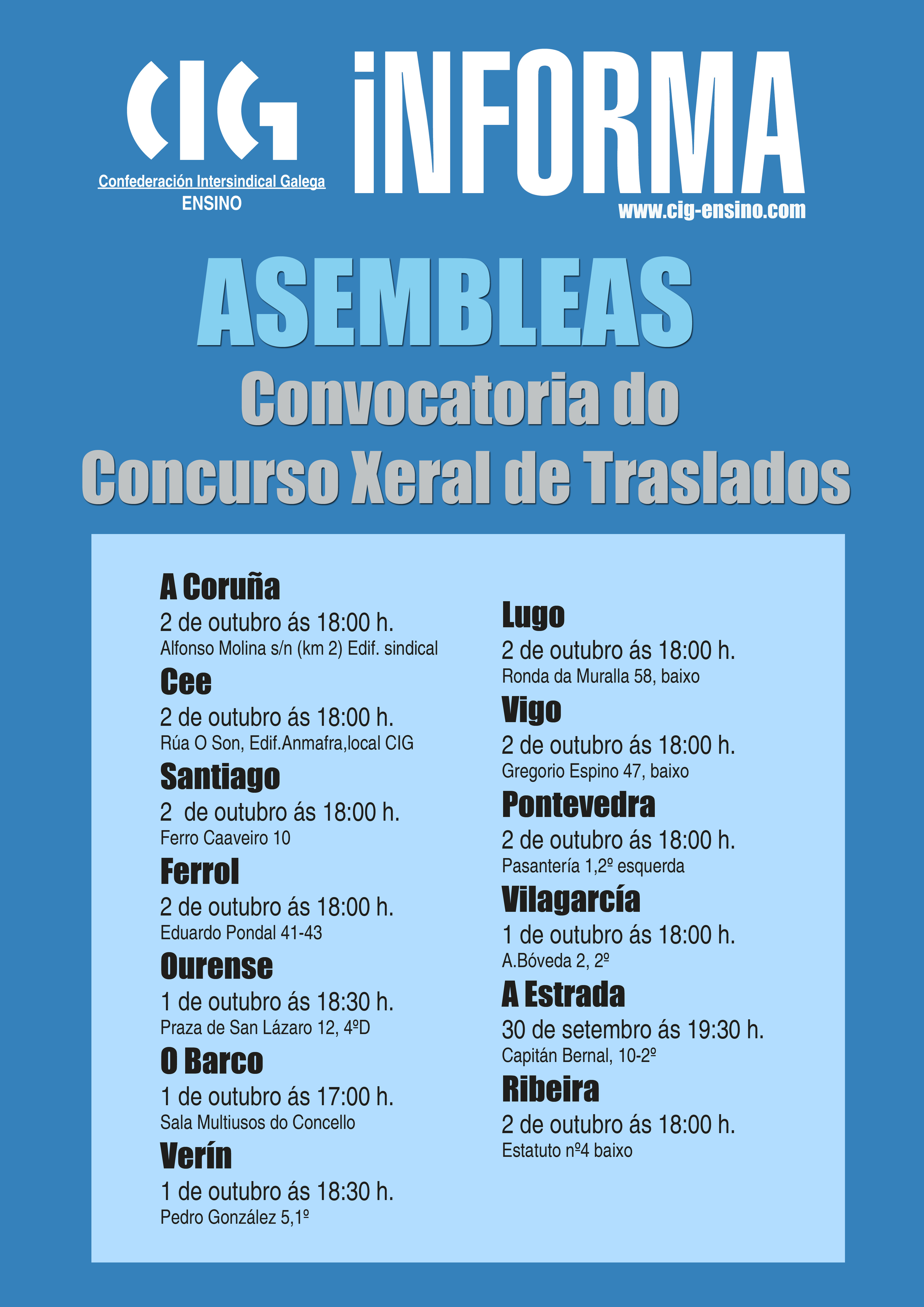 A CIG-Ensino realizará asembleas informativas abertas sobre a convocatoria do Concurso Xeral de Traslados