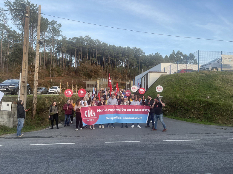 AMICOS non pode seguir facendo oídos xordos ante o clima laboral de coaccións que se vive na empresa, como ten denunciado publicamente a CIG-Ensino, despois do éxito na concentración que protagonizou onte o seu persoal en apoio ao compañeiro despedido por uns feitos dos que non é responsábel, como así se demostrará nos xulgados se non hai unha rectificación e é readmitido. O sindicato tamén denunciará ante a Inspección de Traballo os incumprimentos do convenio se non se negocian melloras laborais para un persoal que, malia a precariedade, presta un servizo de calidade aos usuarios e usuarias da asociación.