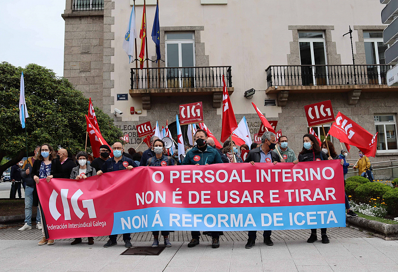 Delegados e delegadas das Área Pública da CIG (Ensino, Administración e Saúde) concentráronse este luns diante da Delegación do Goberno na Coruña en rexeitamento á proposta de modificación do Estatuto Básico do Empregado/a Público do Ministerio de Función Pública e a un “pacto de estabilización” que “deixa tirados/as” a miles de interinos/as e temporais.