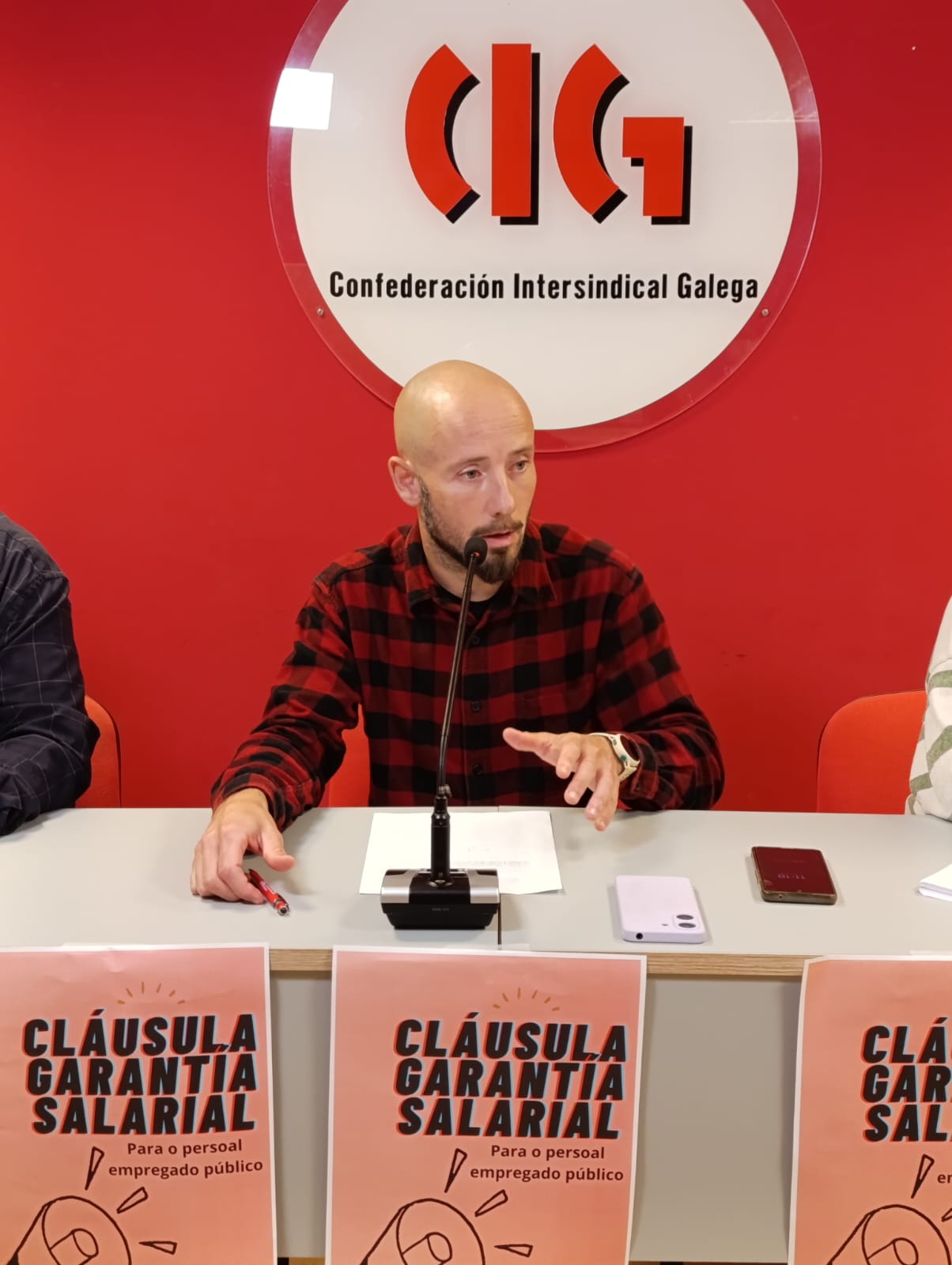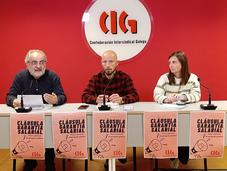 A Área Pública da CIG (Administración, Ensino e Saúde) compareceu en rolda de prensa este luns para reiterar as demandas para garantir a recuperación da capacidade adquisitiva do persoal empregado público e dar a coñecer a campaña de recollida de sinaturas da PNL para o estabelecemento dunha cláusula de garantía salarial, de xeito que os salarios no sector público se actualicen automaticamente cada ano en función da suba do IPC real.