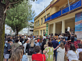 Representantes sindicais concentráronse esta mañá e despregaron unha faixa desde o interior da Consellaría de Educación que foi rapidamente retirada pola seguridade de San Caetano.