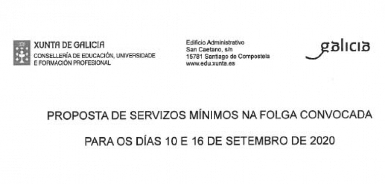 SERVIZOS MÍNIMOS IMPOSTOS PARA A FOLGA DOS DÍAS 10 E 16 DE SETEMBRO DE 2020 |