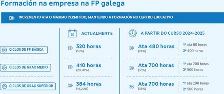 - Na FP Básica vai reducirse a formación no centro educativo un 8% (até 160 horas en dous cursos, 80 por curso)