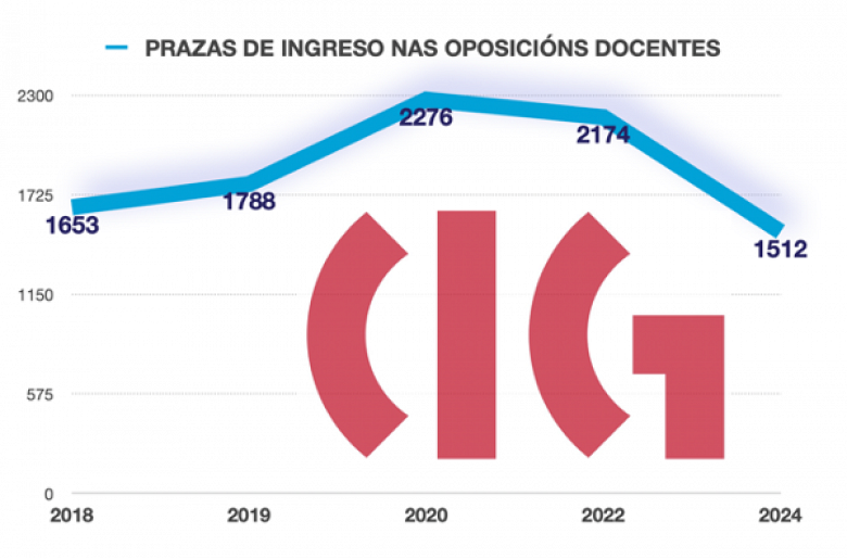 Estes datos permiten concluír, segundo o sindicato maioritario, “que estamos diante da peor oferta de emprego destes últimos anos, como se pon de manifesto na gráfica superior. Como comparación máis próxima temos as oposicións de 2022 nas que se acumularon as taxas de reposición de dous anos (2020 e 2021), superando a oferta dese ano nun 44% á deste ano 2024 (662 prazas máis)”.