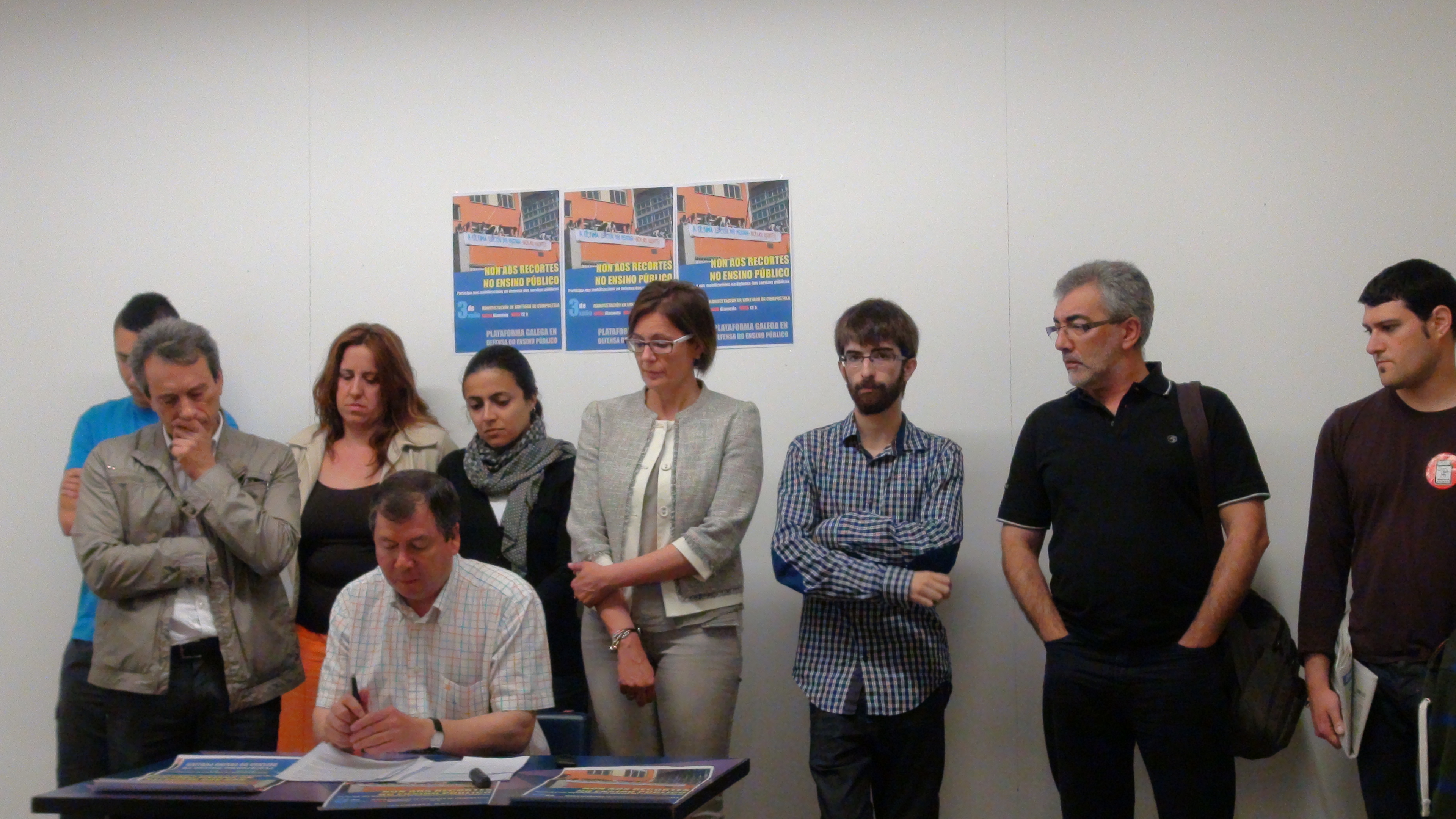 O representante da Plataforma insistiu na importancia de continuar mobilizándose co ánimo de esixirlle á Xunta de Galiza, que é a que ten as competencias educativas, que non aplique o RD Lei 14/2012 e que o recorra para así frear máis recortes no ensino público. Á rolda de prensa, celebrada hoxe, asistiron representantes da Federación de ANPAS de Santiago e Lugo (FAPACEL), AS-PG, CIG-Ensino, os Comités, a Liga de Estudantes, Galiza Nova, o BNG e o Sindicato de Estudantes. E escusaron a súa ausencia a Federación de ANPAS de Ferrol (FEANPAS).