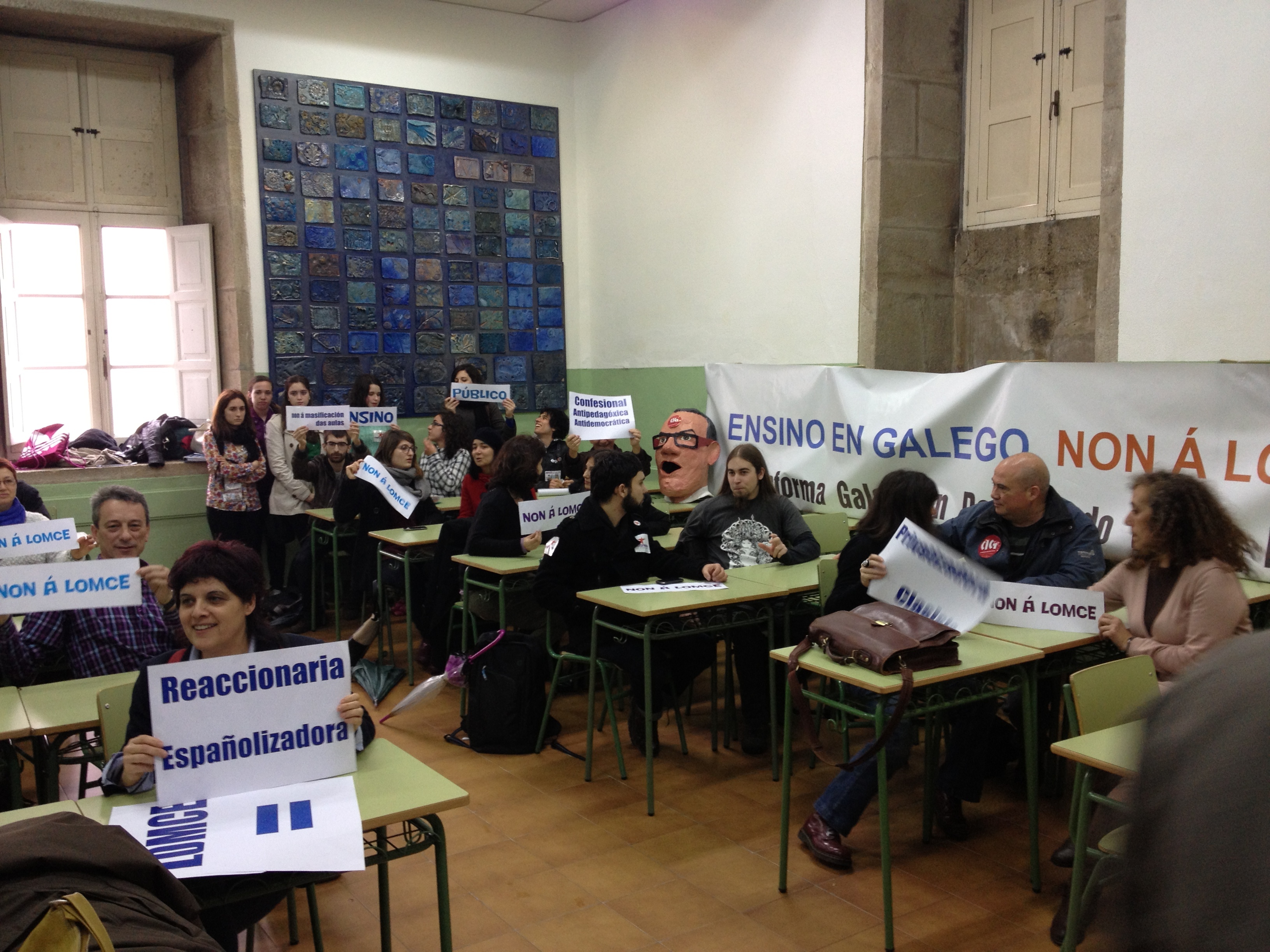 A Plataforma Galega en Defensa do Ensino Público estase a mobilizar contra o anteproxecto de Lei Orgánica para a Mellora da Calidade Educativa, para amosar o seu total rexeitamento a unha lei reaccionaria, españolizadora, privatizadora, clasista, antipedagóxica, antidemocrática, e confesional, que liquida a igualdade de oportunidades e expulsa do ensino os sectores sociais máis desfavorecidos da sociedade”, dixo Luisa González en representación da Federación de ANPAs de Compostela.