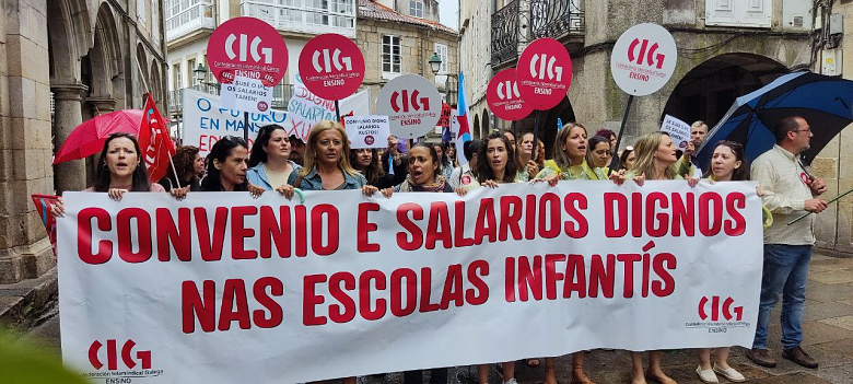Nunha asemblea celebrada onte por videoconferencia na que participaron masivamente as delegadas da CIG-Ensino nas escolas infantís de xestión privada ou indirecta (un colectivo moi precarizado que agrupa a 2000 traballadoras en Galiza), unha vez escoitadas as afiliadas e as súas compañeiras de traballo nos centros, decidiuse secundar a folga convocada para os días 19 e 25 de outubro e 8 e 15 de novembro. Tras o debate suscitado polas formas en que CCOO rexistrou este paro, en solitario, e despois de rexeitar o ofrecemento da CIG-Ensino, que é o sindicato maioritario deste sector en Galiza, de reclamar un Convenio Galego digno se non se conseguen melloras no XIII Convenio estatal, as representantes sindicais optaron pola maior unidade posíbel, pois entenden que é o único camiño de poder avanzar nos seus dereitos, sobre todo despois de ver o éxito da folga e mobilizacións levadas a cabo en xuño. Unha convocatoria, na que malia os servizos mínimos abusivos, participaron o 80% das traballadoras dos 200 centros que hai en Galiza deste tipo.