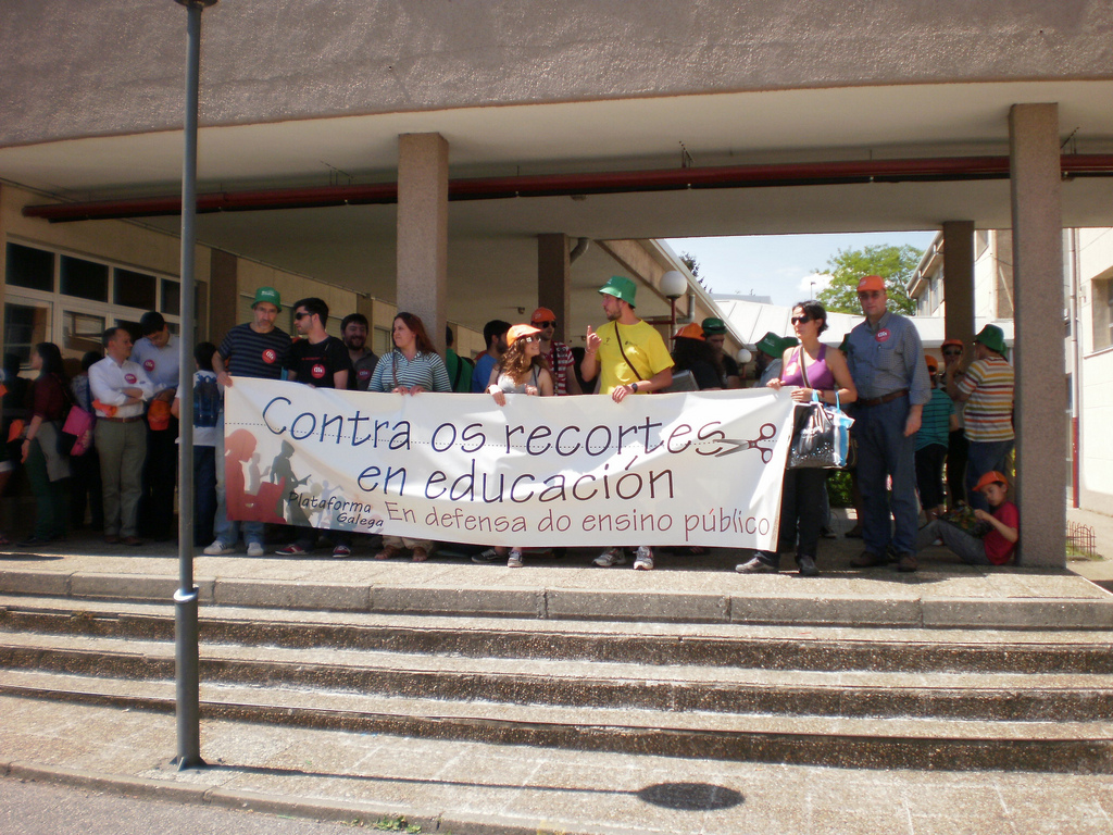 A Plataforma Galega en Defensa do Ensino Público rexeita os recortes propostos, denuncia que con eles se ataca gravemente o ensino público, a súa calidade e o dereito de igualdade de oportunidades do alumnado, que aumentará o fracaso escolar e despedirá máis de 2000 profesores/as. Por todo isto, esixe que o Goberno galego actúe como tal e non se someta a decisións que van en contra do ensino galego, que se negue, rotunda e publicamente, a aplicar calquera das medidas contidas no RD Lei 14/2012 e que presente recurso por invasión de competencias. A Plataforma esta integrada por diferentes entidades (organizacións sindicais, ANPAS, movementos de renovación pedagóxica , organzacións estudiantis, partidos políticos...) e permanece aberta e a novas adhesións individuais e colectivas.