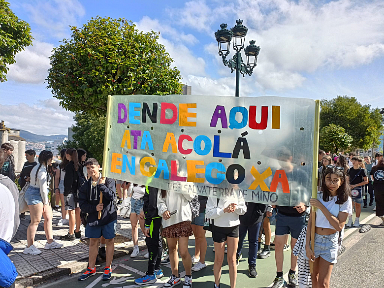 Esta é unha mensaxe para as familias, as institucións, os medios, as mestras e os mestres, as rapazas e rapaces coma nós: Dende aquí queremos berrar ben alto que non nos apetece, non nos presta e non nos peta que a nosa lingua esmoreza. Por iso vos dicimos:
