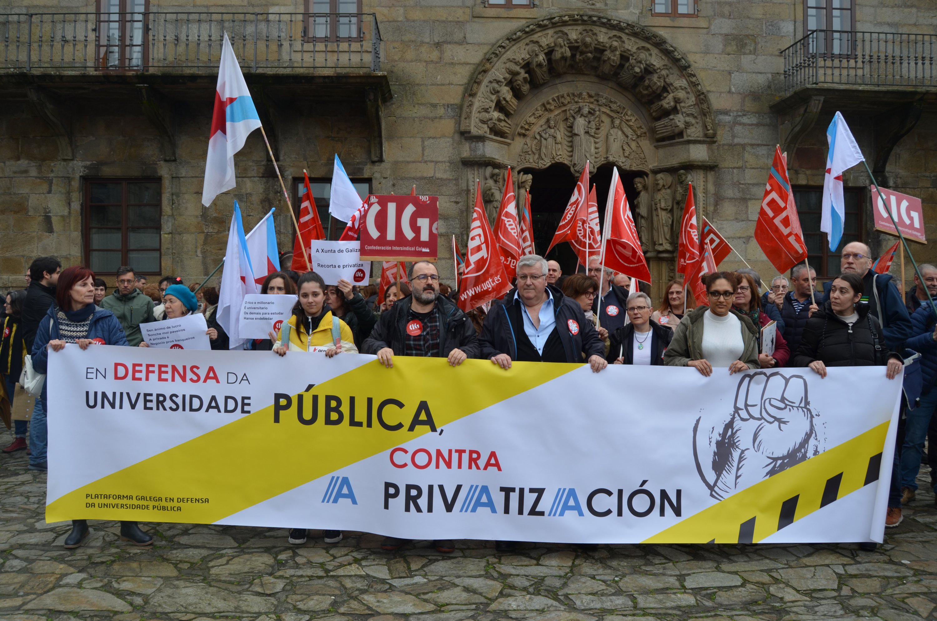 CIG, UGT, CCOO, Traballadores Galegos da Universidade (TGU), A Trabe Colectivo Nacionalista do PAS da USC, Confederación ANPAS GALEGAS, Bloque Nacionalista Galego (BNG), Grupo Común da Esquerda, Galiza Nova, BRIGA, Partido Comunista de Galicia (PCG), ANOVA, Compostela Aberta, Asemblea Aberta de estudantes de Ourense, Asemblea de Investigadoras de Compostela, Fronte de Estudantes, En Defensa das Humanidades (UVigo), Federación Rural Galega - FRUGA
