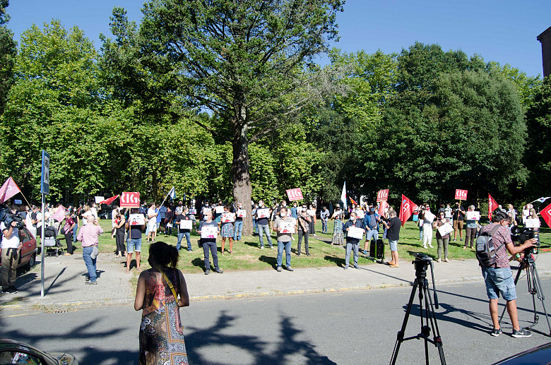 O secretario nacional da CIG-Ensino, Suso Bermello, amosou a súa indignación esta mañá na concentración de Compostela coa actitude de boicot da Consellaría e volveu incidir na discriminación entre as distintas etapas educativas e no paso atrás anunciado onte por Román Rodríguez de autorizar a semipresencialidade ou a colocación de mamparas nas aulas de secundaria, bacharelato e FP para non contratar máis reforzos.