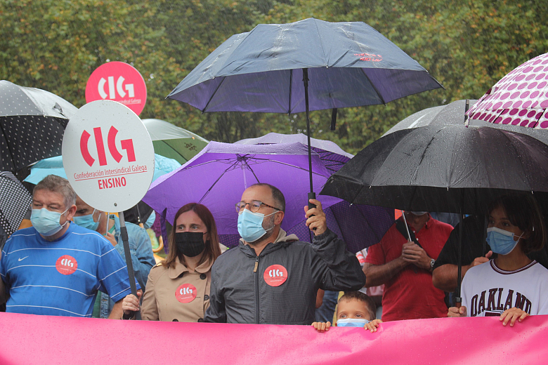 CIG-Ensino e ANPAS GALEGAS concentráronse esta mañá diante do departamento dirixido por Román Rodríguez en San Caetano para amosar o seu descontento ante os recortes de persoal docente e ante a volta a unha “situación incluso peor que antes da pandemia en canto a número de profesorado nas distintas etapas educativas do ensino público”, tal e como explicou Suso Bermello, secretario nacional da central sindical.