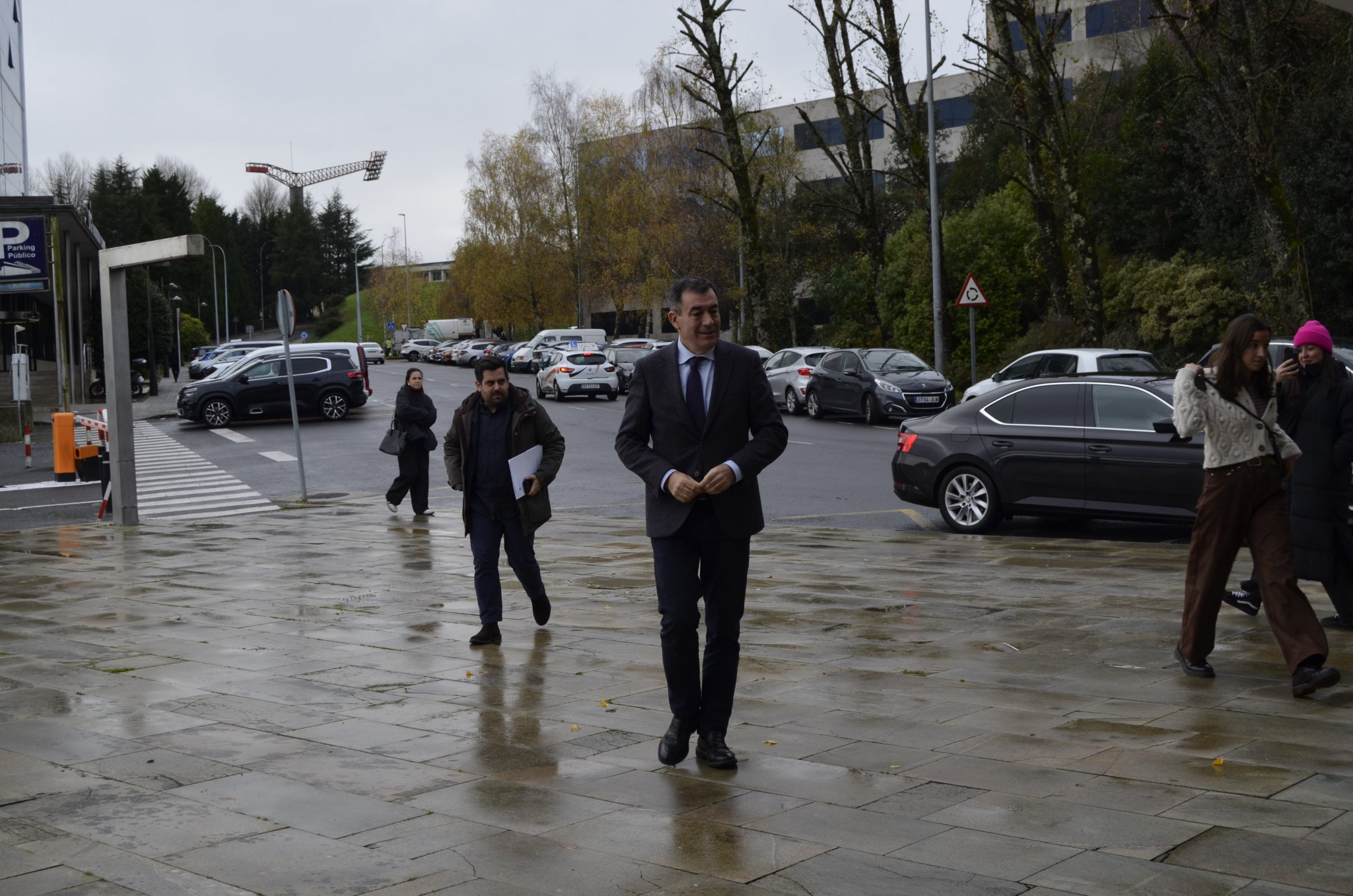 Delegados e delegadas de ambas organizacións concentráronse ás portas do Pazo de Congresos para abordar a Román Rodríguez persoalmente tras máis de dous meses de silencio por parte da súa Consellaría ante as demandas e mobilizacións do profesorado.