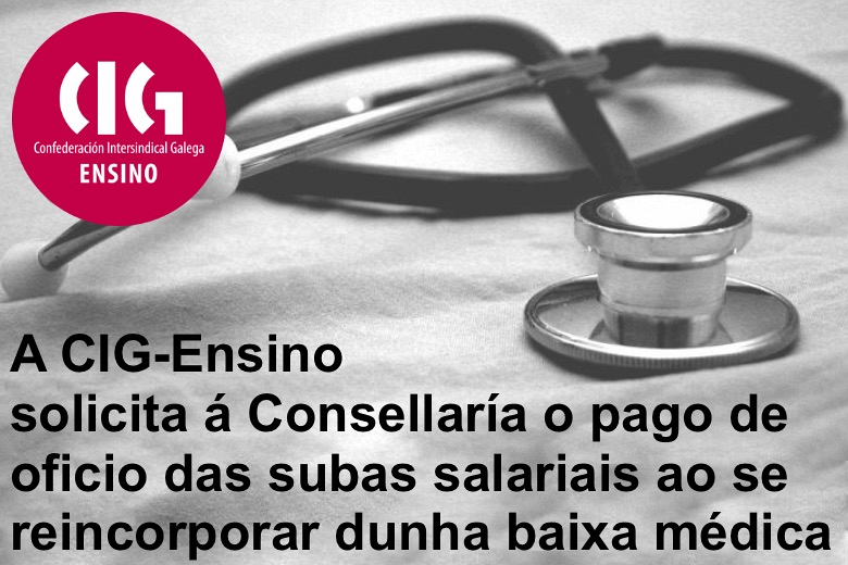 CIG-Ensino solicita á Consellaría o pago de oficio das subas salariais ao se reincorporar dunha baixa médica