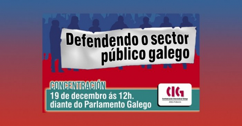 A Área Pública da CIG concentrarase o vindeiro martes, día 19 de decembro, ás 12:00 horas, diante do Parlamento de Galiza coincidindo co pleno no que o PP aprobará a Lei de Orzamentos para 2018.
