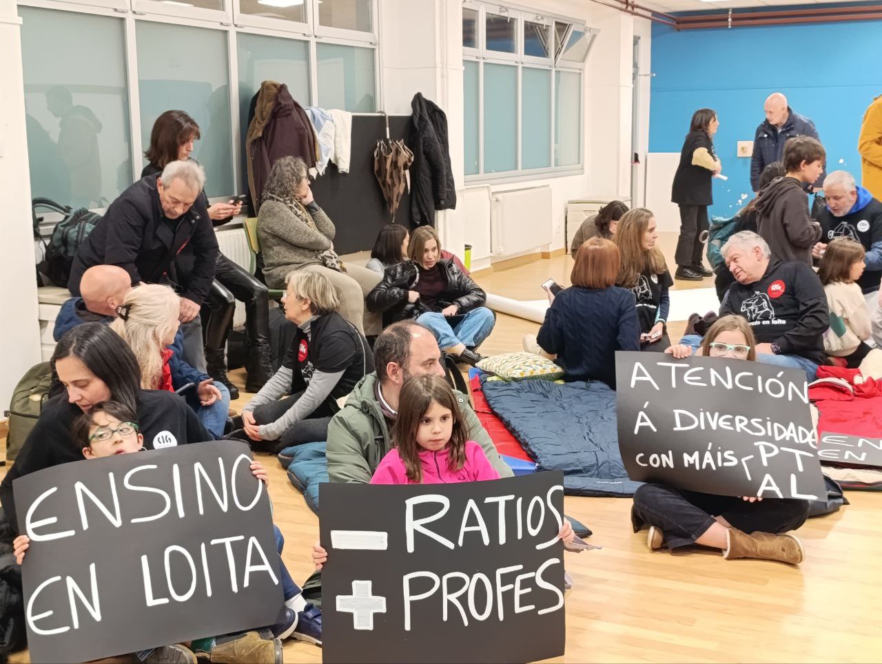 Esta tarde organizáronse encerros en colexios de infantil e primaria de Compostela, Ferrol e Viveiro moi castigados pola falta de especialistas para atender alumnado con necesidades e nun IES de Vilagarcía con máis de 1.100 estudantes.