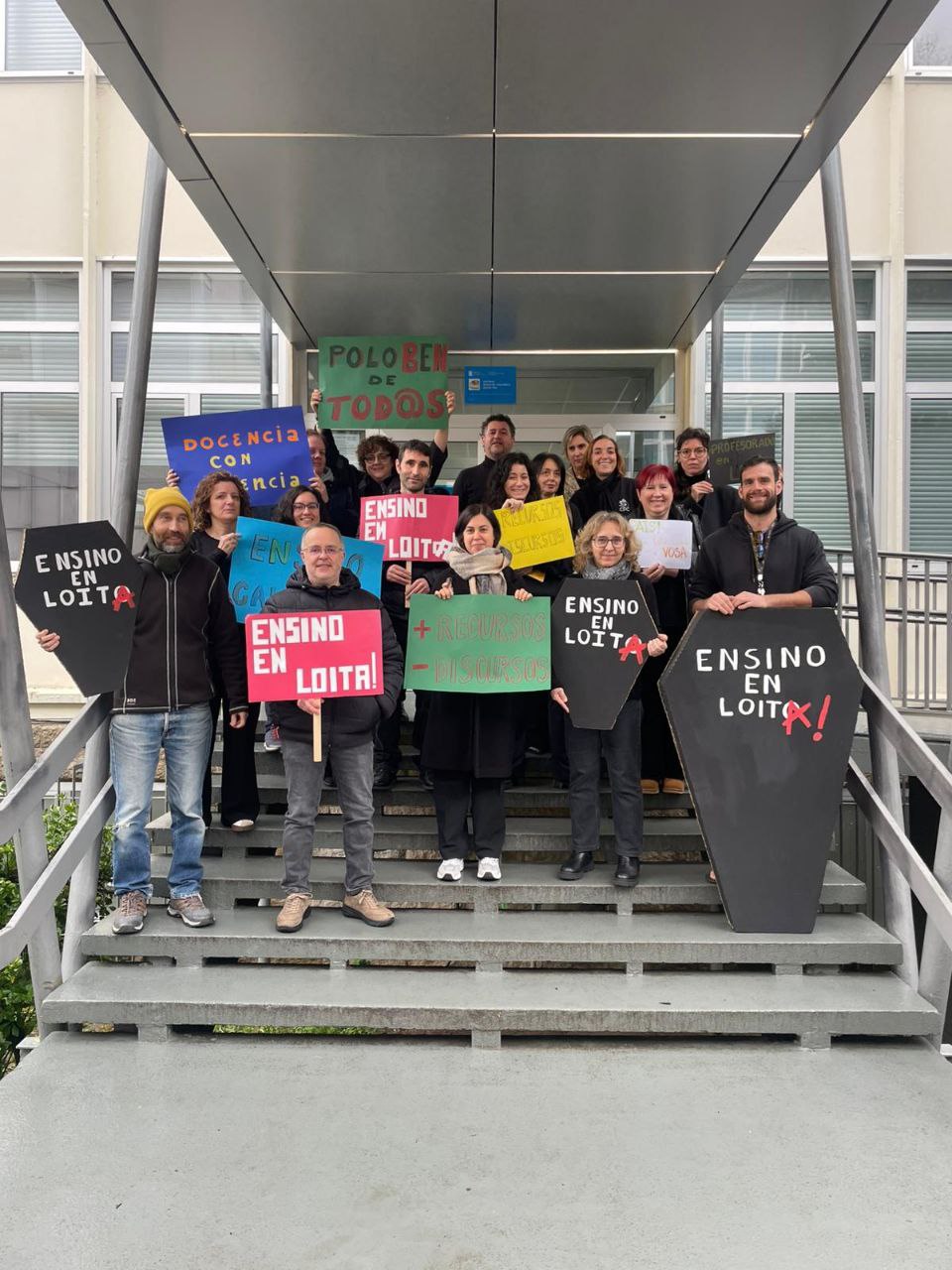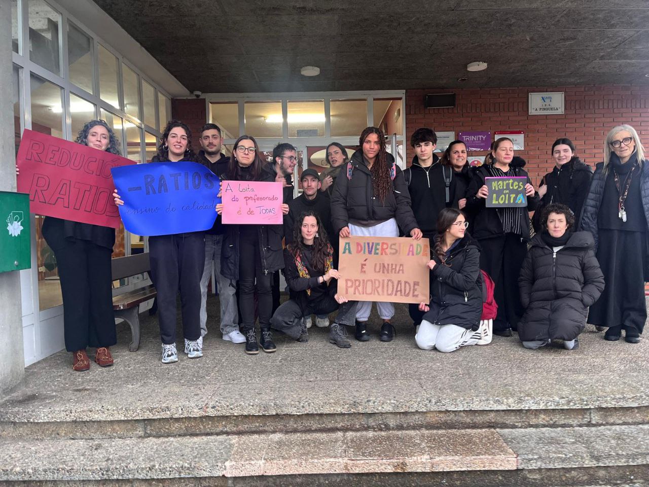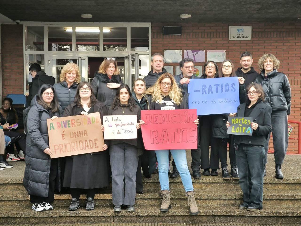 Varios centros protagonizaron hoxe xa concentracións dentro da acción “martes en loita” que pretende socializar nos centros de ensino diante de alumnado e familias as necesidades máis urxentes: rebaixa de ratios, recuperación do horario lectivo, máis persoal para atender a diversidade, redución da burocracia, reforma da FP consensuada, melloras salariais e respecto profesional.