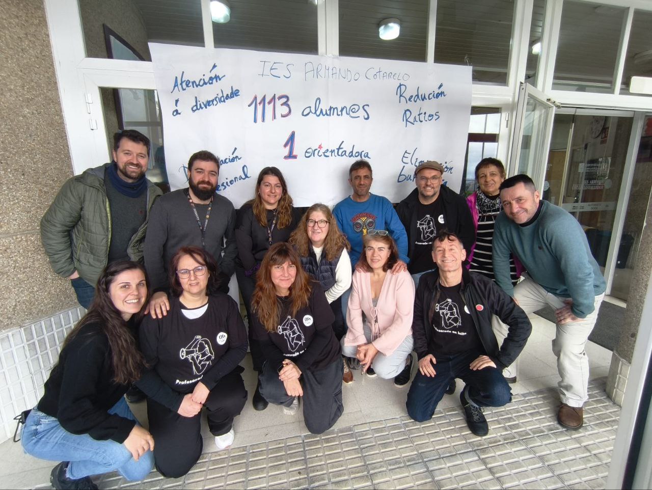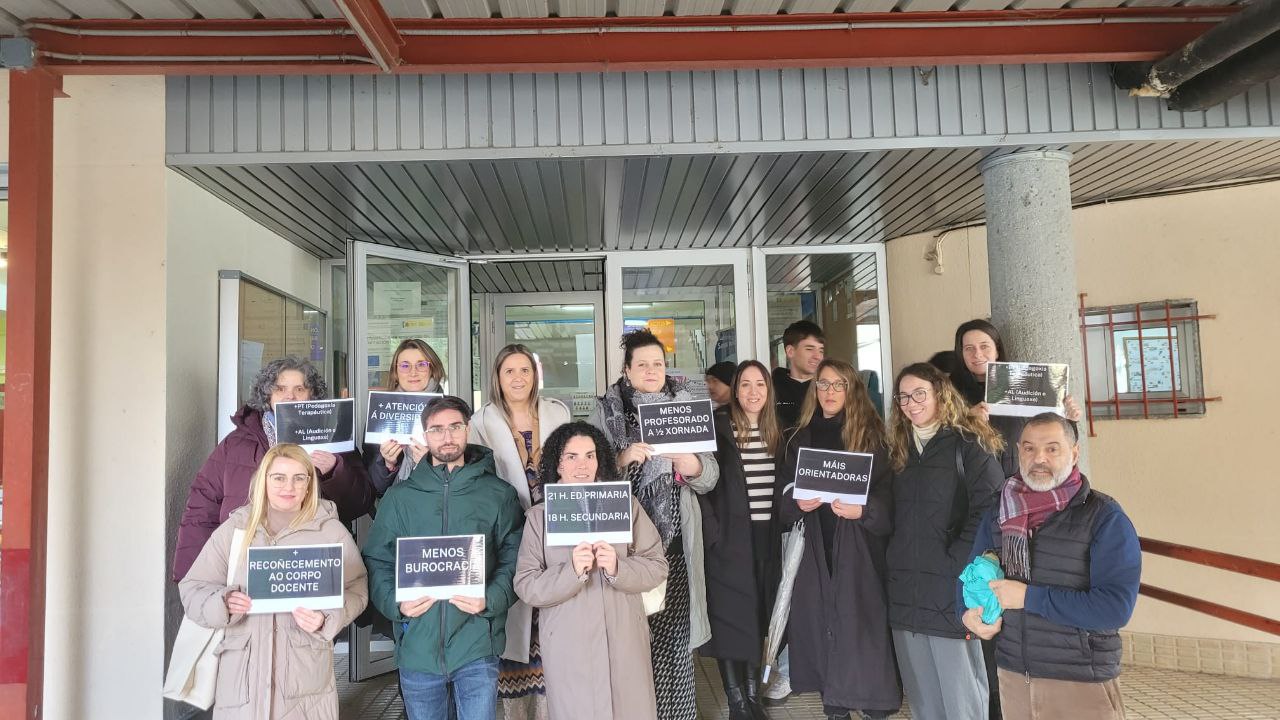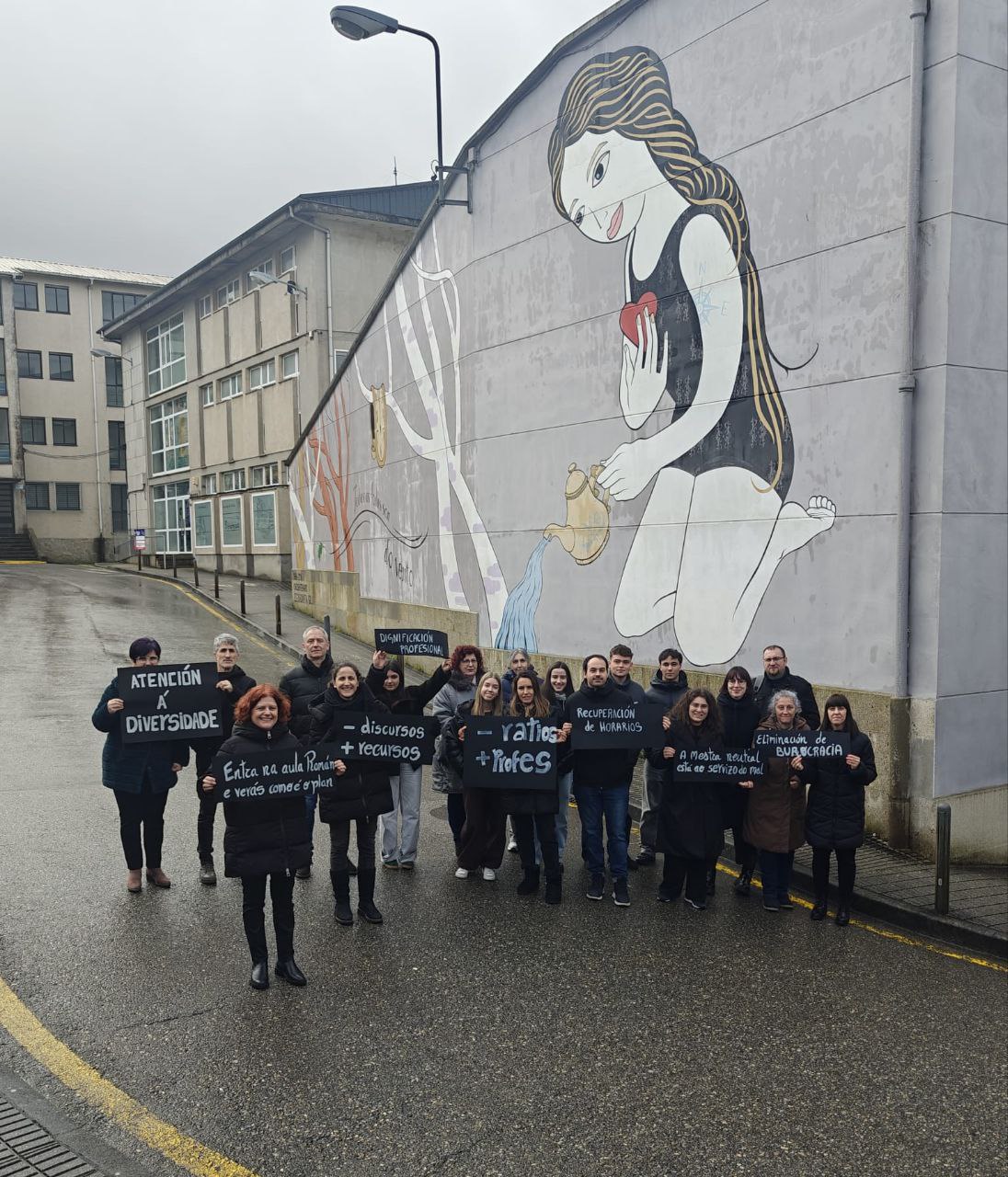 Varios centros protagonizaron hoxe xa concentracións dentro da acción “martes en loita” que pretende socializar nos centros de ensino diante de alumnado e familias as necesidades máis urxentes: rebaixa de ratios, recuperación do horario lectivo, máis persoal para atender a diversidade, redución da burocracia, reforma da FP consensuada, melloras salariais e respecto profesional.