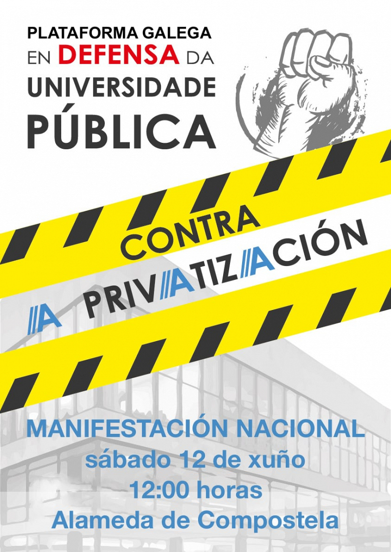 Os integrantes da Plataforma Galega en Defensa da Universidade Pública, onde atopamos desde organizacións estudantís e sindicais como a CIG-Ensino até colectivos investigadores, continúan coa súa campaña de mobilizacións en contra do proxecto de universidade privada que, auspiciada por Abanca e promovida polo goberno do PP na Xunta de Galiza, pretende implantar un modelo de ensino superior privado no noso país.