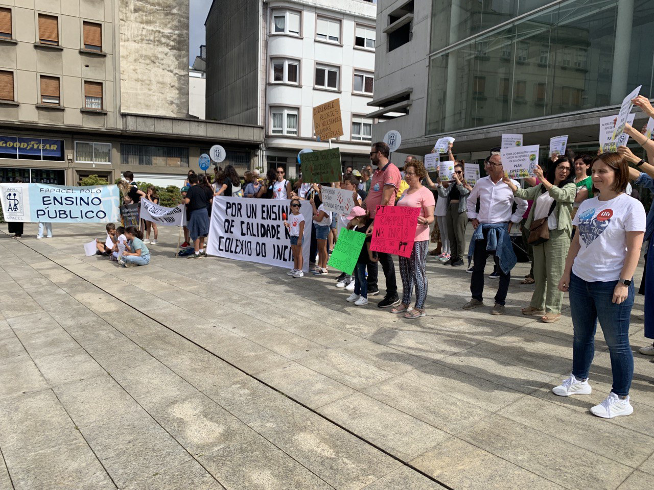 Na concentración, convocada por FAPACEL e apoiada pola CIG-Ensino, participaron as comunidades educativas do CEIP Ricardo Gasset (Incio), CEIP Proba do Brollón e CEIP Rosalía de Castro (Bóveda).