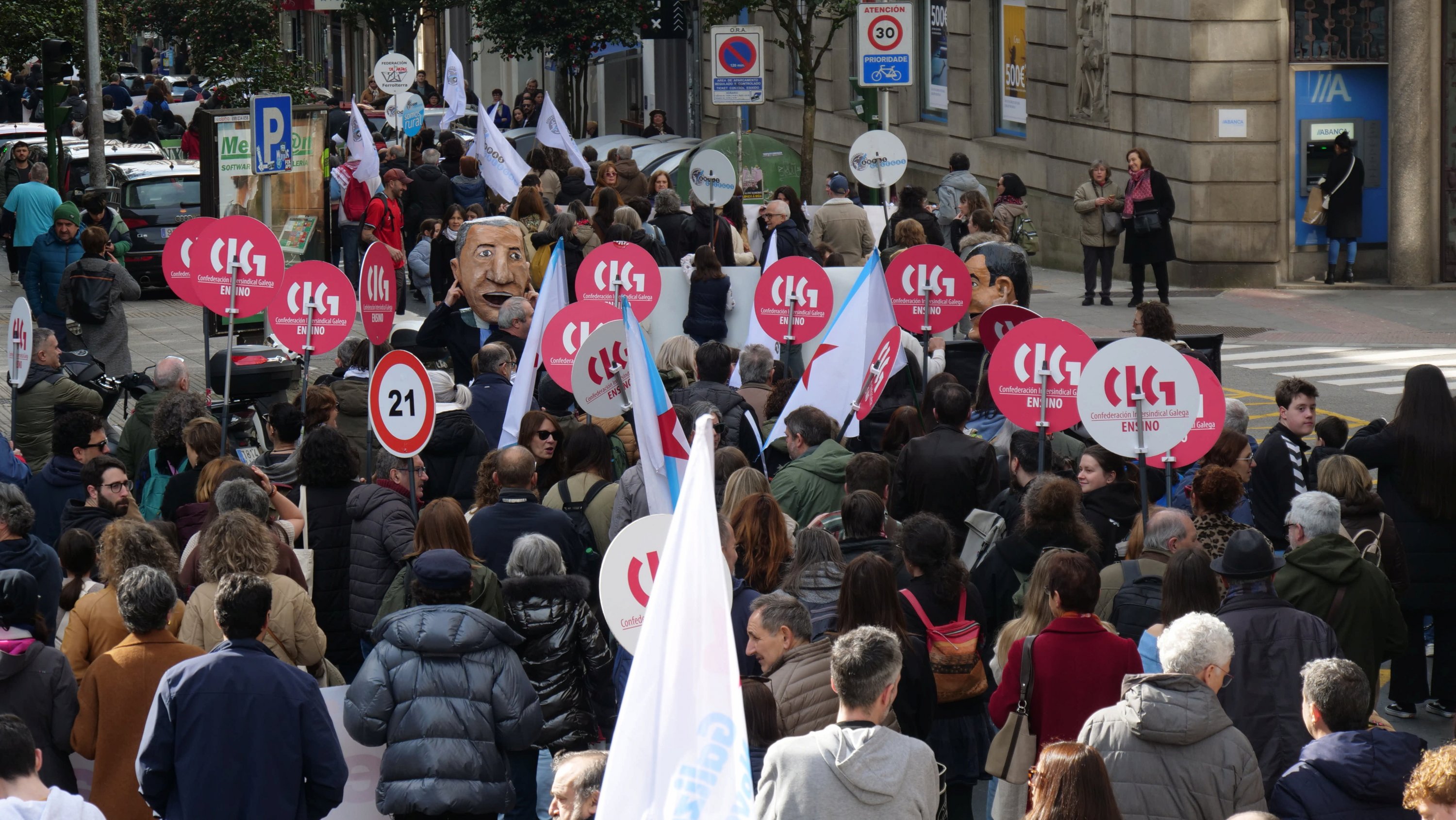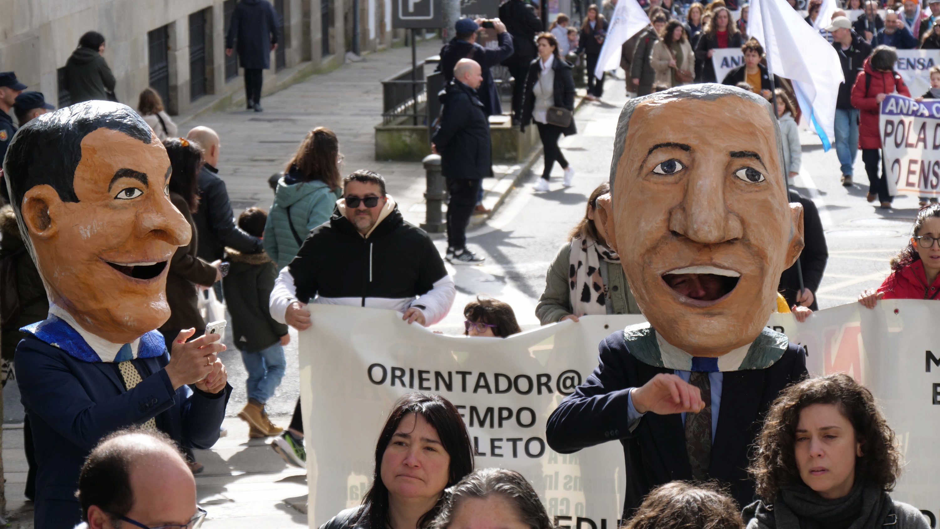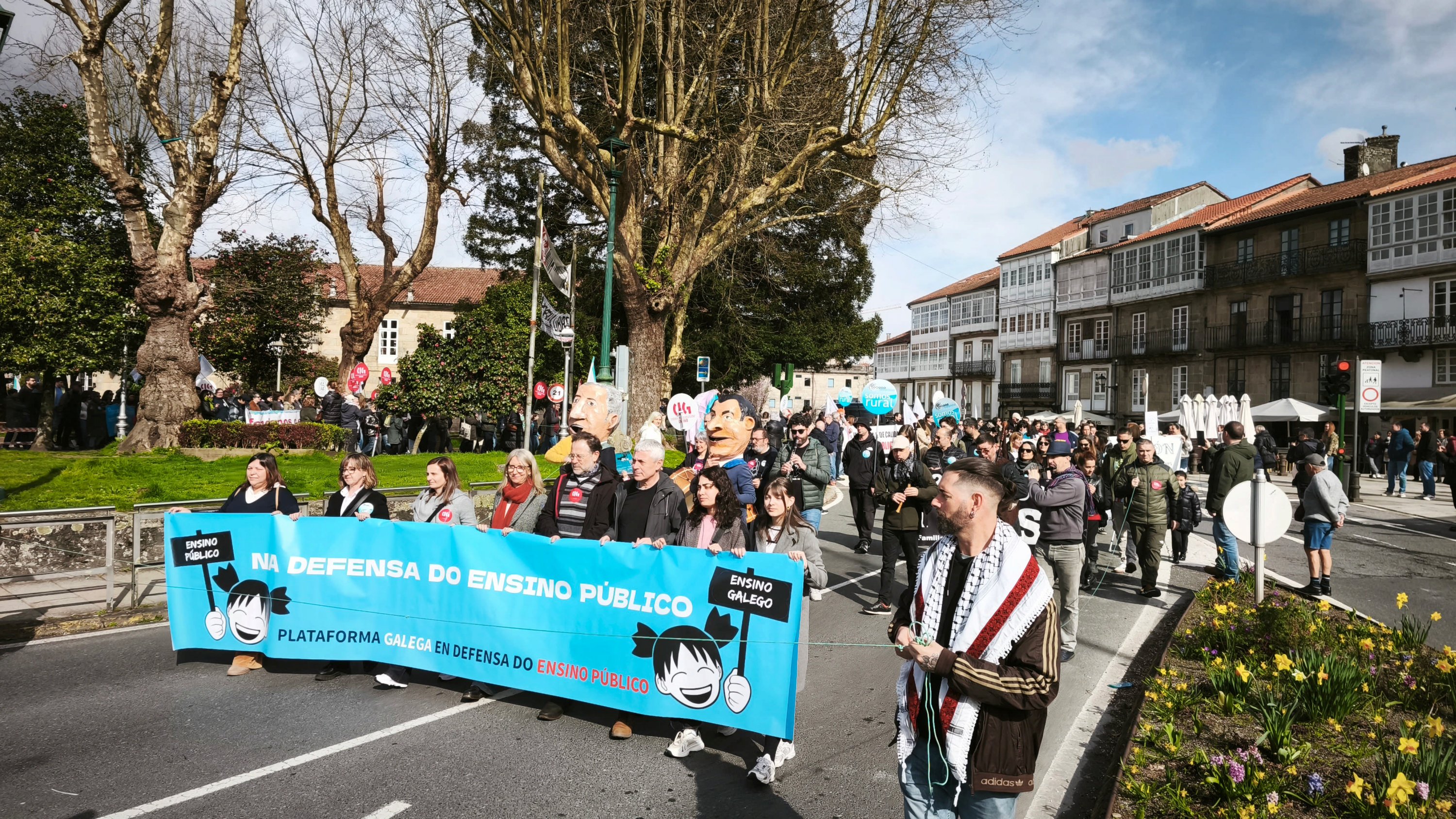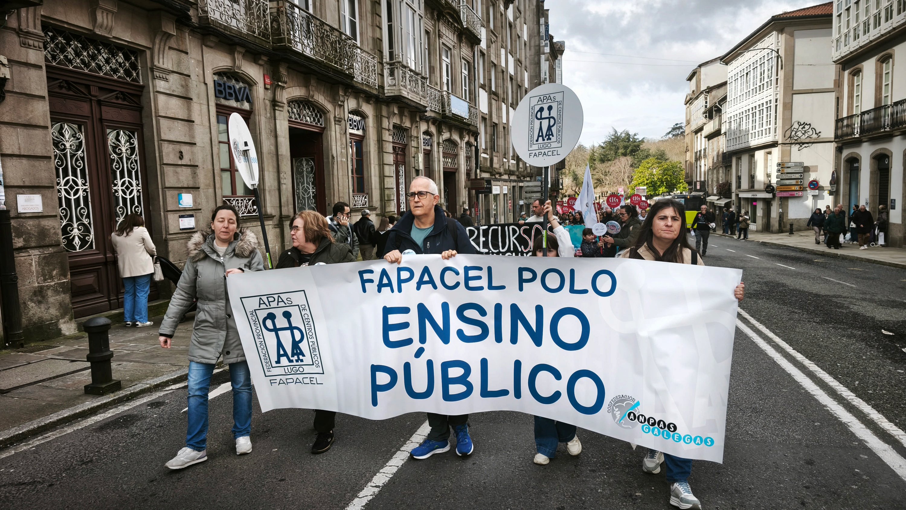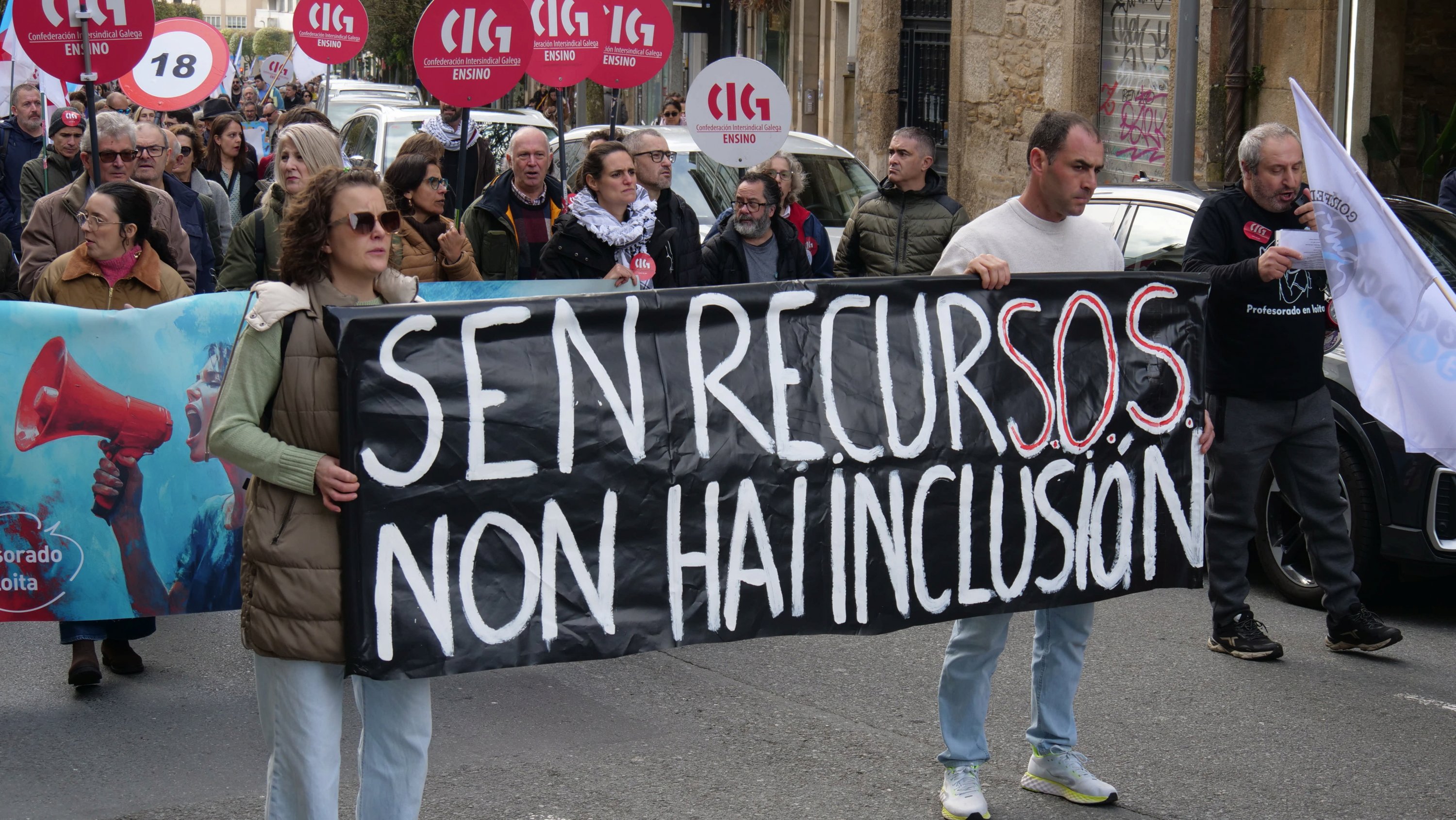 A marcha, impulsada por Anpas Galegas, contou coa asistencia de miles de persoas que corearon consignas como “menos ratio, máis profesorado”, “máis inclusión, máis inversión”, “sen recursos, non hai inclusión” ou “onde están que non se se ven? as orientadoras, AL e PT”. Con pancartas nas que se podían ler as necesidades dos centros e as reclamacións das Anpas, e contando coa amenización dos cabezudos do presidente da Xunta e do conselleiro de Educación a manifestación percorreu as rúas da capital galega para rematar na Praza de Praterías coa lectura dun manifestou a cargo da presidenta da maior confederación de Anpas do noso país. Isabel Calvete reprochou “que se estea a falar de que temos o ensino máis inclusivo do estado cando parte do alumnado galego, o máis vulnerable, está desprotexido. Non se respecta o seu dereito a un ensino de calidade, non se respecta o seu dereito a formar parte da súa sociedade en igualdade de condicións, porque esa igualdade constrúese sobre todo desde a escola”. Con respecto a como se senten as familias galegas indicou que “estamos fartas de palabras baleiras, de promesas incumpridas e de ter que remover ceo e terra para conseguir algo que é un dereito, fartas de que non escoiten, de escusas absurdas. E estamos moi fartas de que se fale de inclusión cando non hai tal, cando vemos como se priva ás nosas fillas e fillos dos apoios, reforzos e desdobres necesarios para súa formación”.