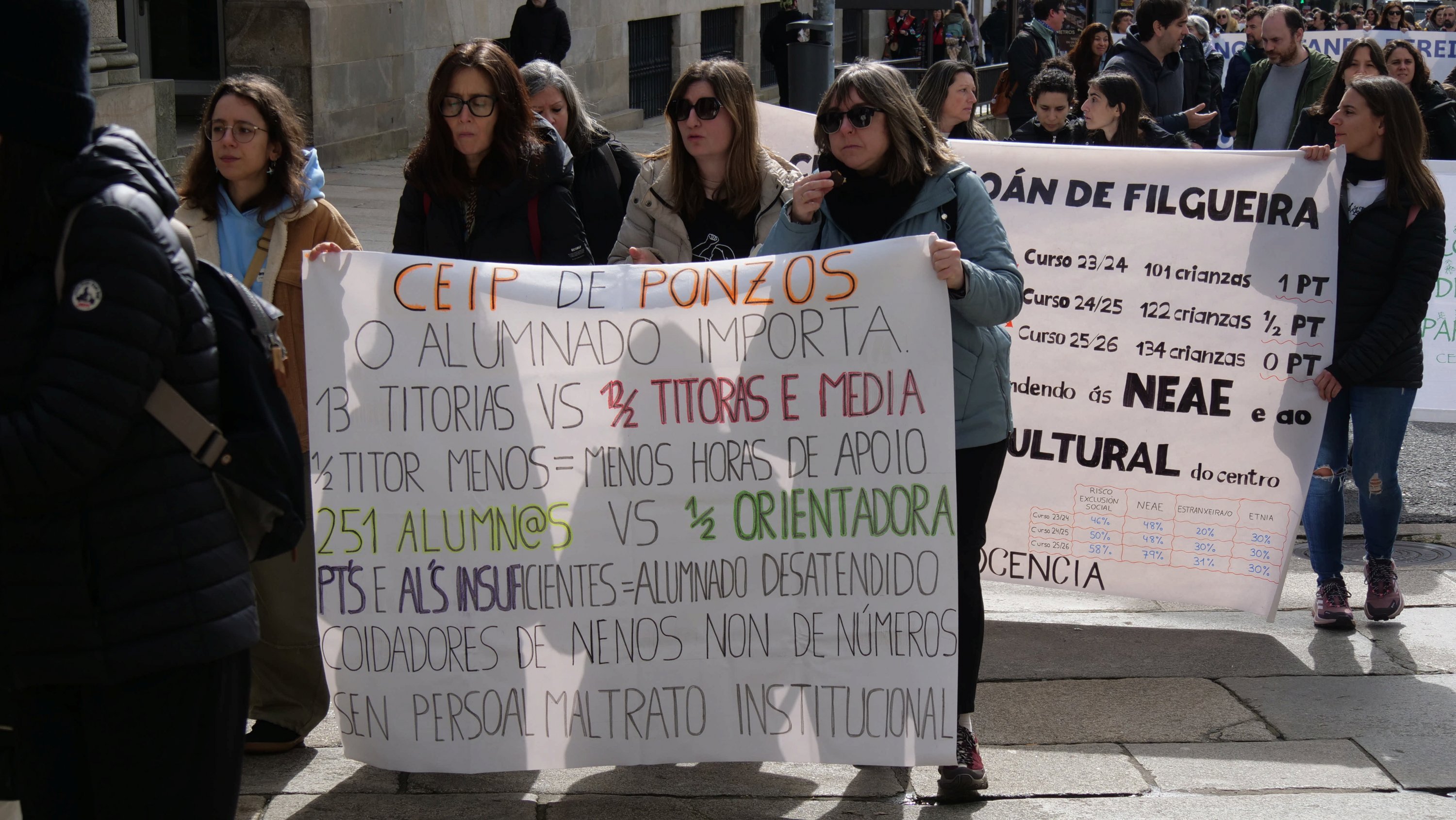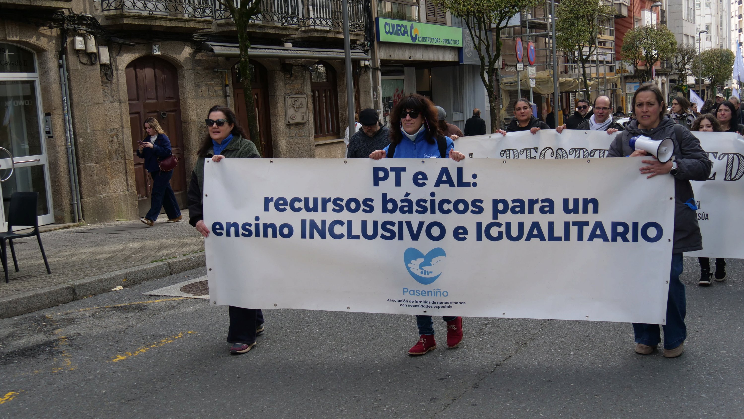 Con todo, lembrou que as problemáticas existentes nas aulas, co 17,5% do alumnado sobre o total con necesidades educativas diagnosticadas segundo as estatísticas do Ministerio no curso 23/24, “non afectan só a quen precisa do apoio de especialistas, senón que as súas compañeiras e compañeiros tamén saen prexudicados, e non van interiorizar a inclusión porque non a ven e se non a ven non van promover unha sociedade mellor e aí perdemos todas e todos. Ningún neno e ningunha moza deste país pode quedar atrás porque as políticas educativas que teñen a responsabilidade de garantir os seus dereitos, de protexelas, non están funcionando e non traballan pensando nelas. Esquecemos con demasiada facilidade cal é a cerna de todo o sistema educativo, da comunidade educativa. Non son os cartos, nin os votos, é o alumnado e todo, absolutamente todo, ten que xirar ao seu redor”, rezaba o manifesto.