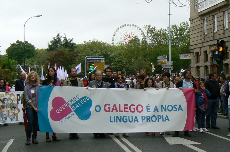 A manifestación foi convocada pola plataforma cidadá “Queremos Galego” baixo o lema “Paremos os ataques contra o galego”