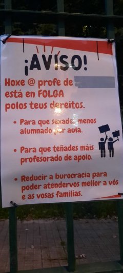 Despois desta manifestación, pola tarde están previstos peches nos seguintes centros educativos como unha estratexia máis durante esta folga para visibilizar o conflito laboral e social protagonizado polo persoal docente galego. Estes son os lugares e os horarios onde están previstos: