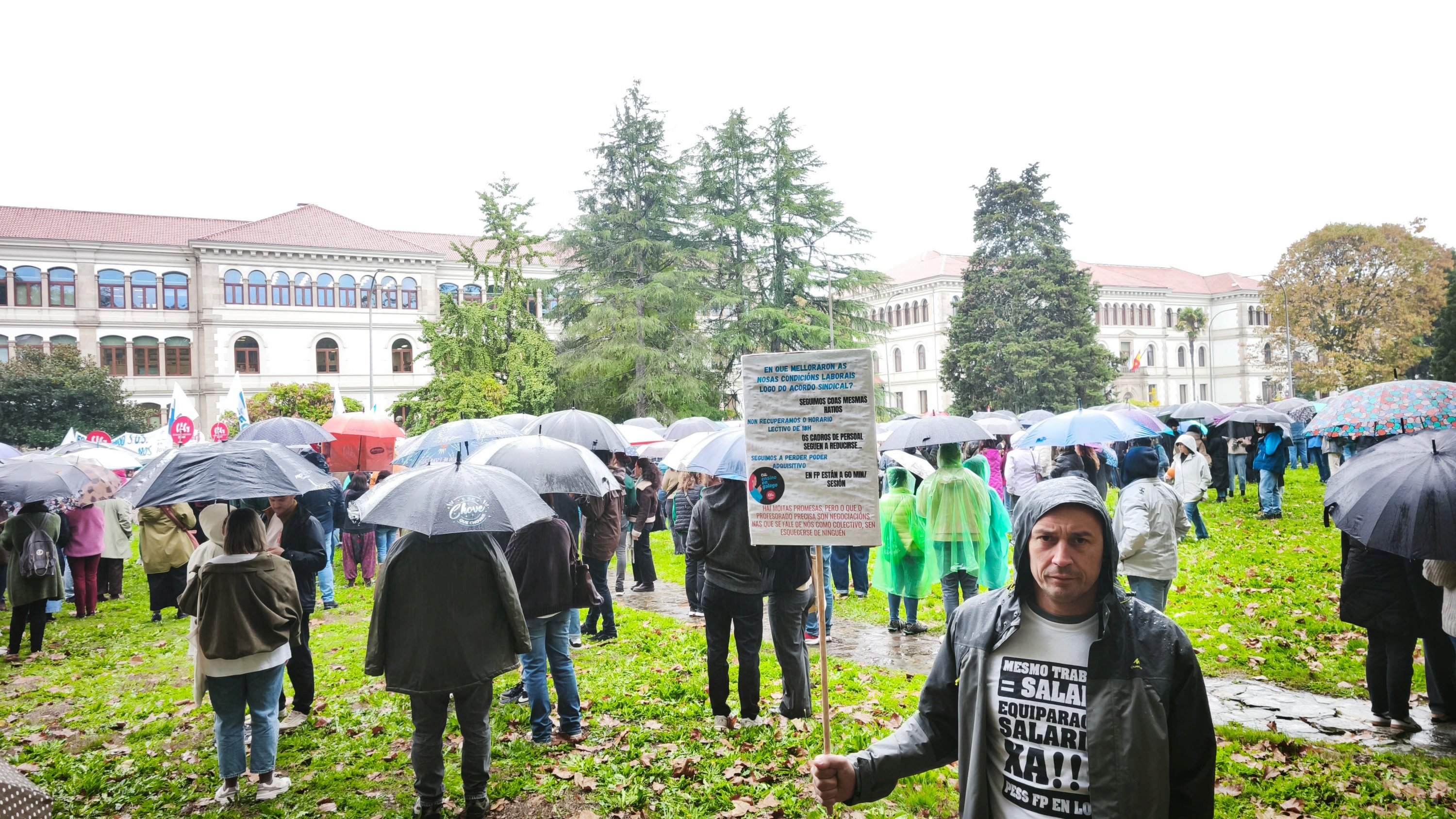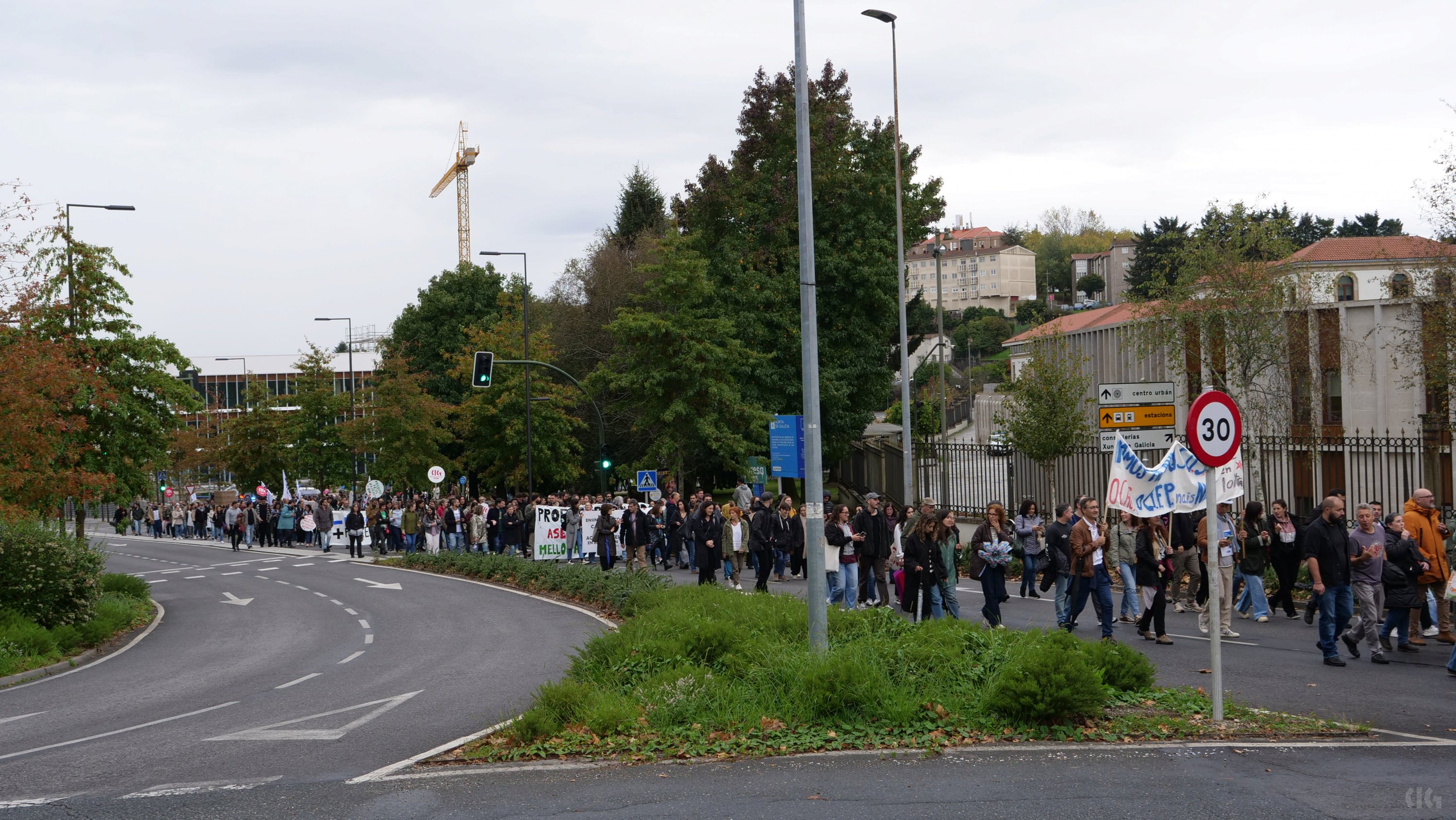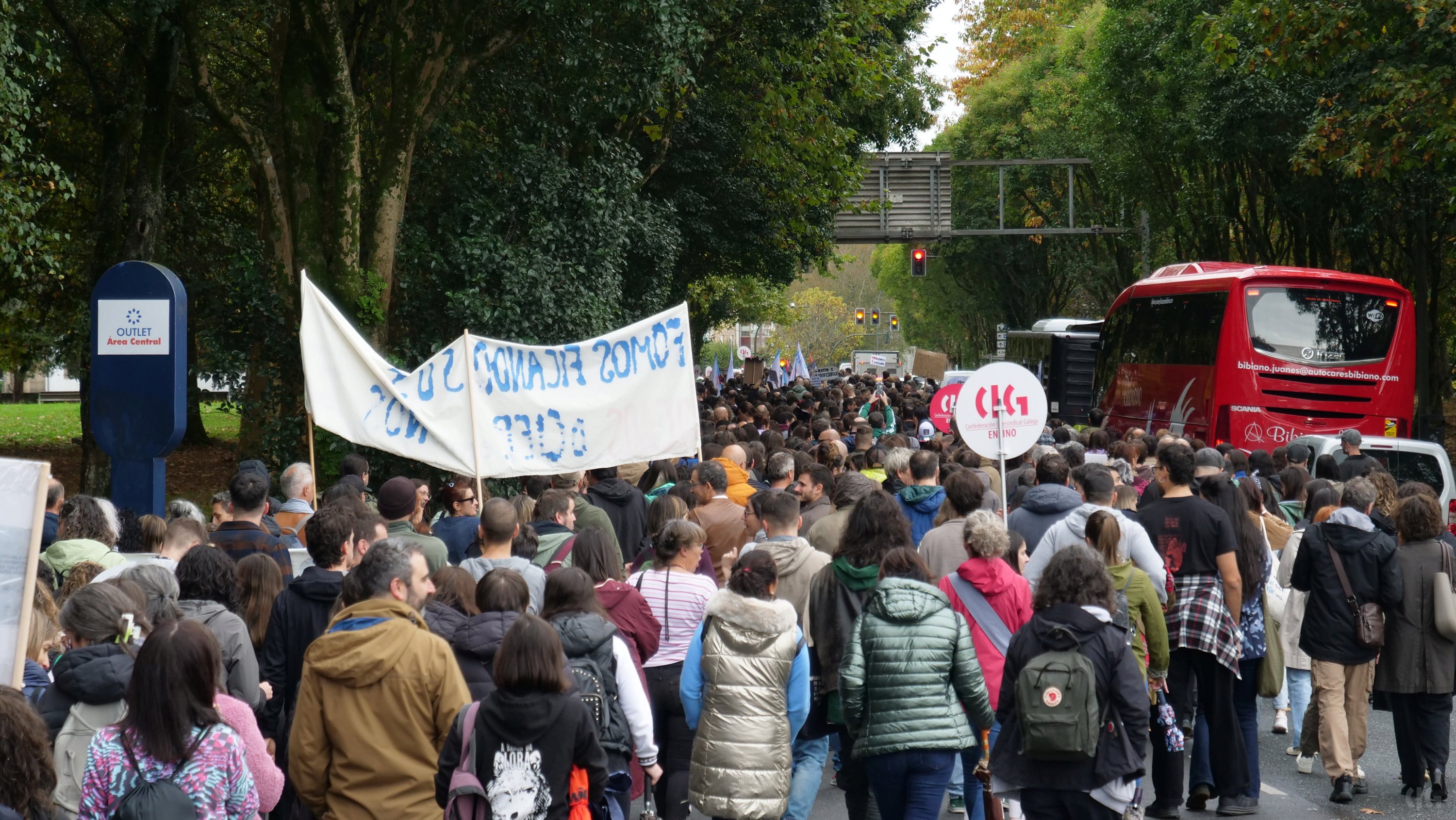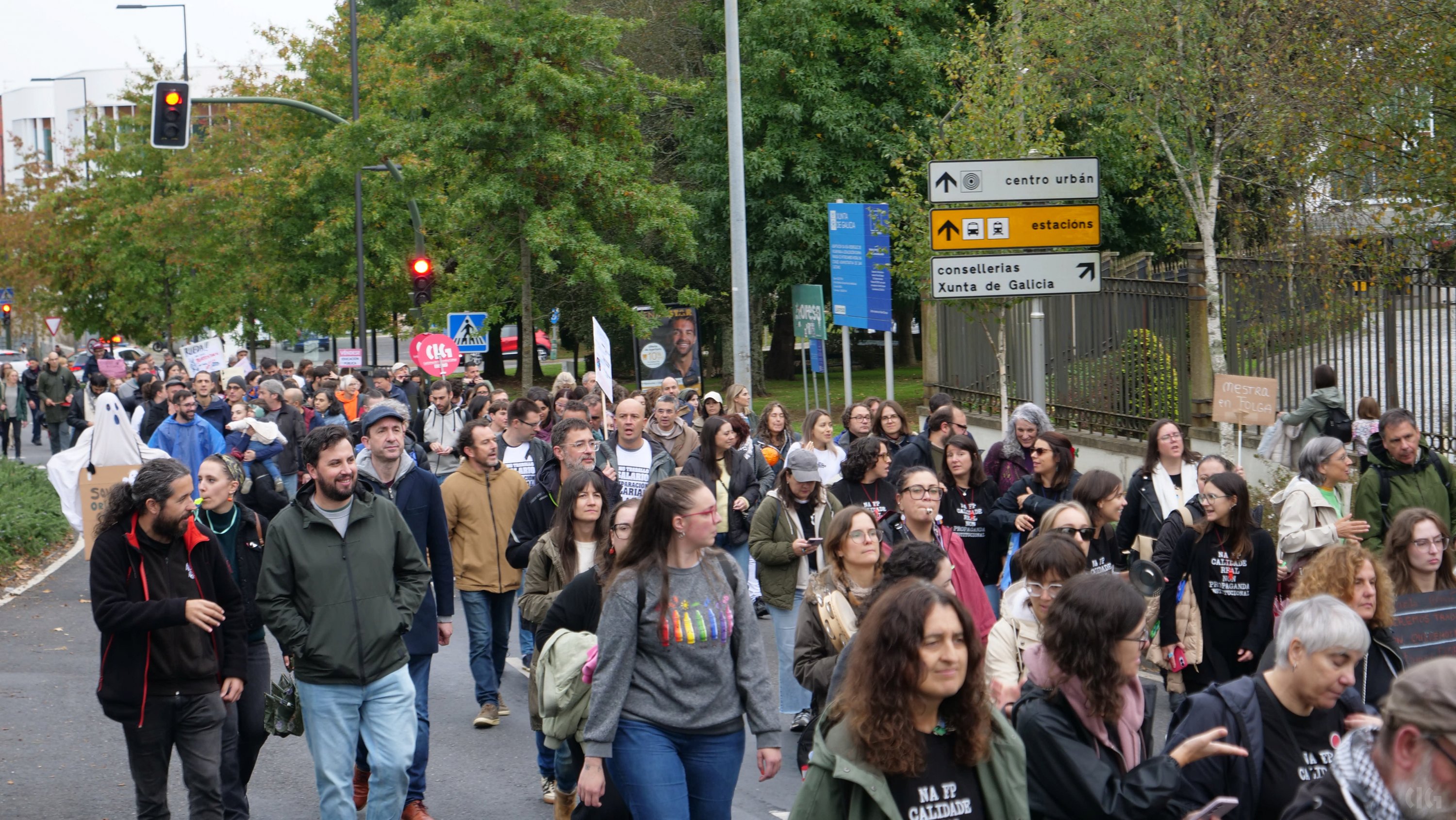 A primeira xornada da folga docente este mes de outubro, a segunda no que vai de curso, decorreu cun importante seguimento de profesorado, á espera de que se contrasten os datos de participación a partir do vindeiro xoves. O persoal docente, que estes días estivo moi activo nos propios centros colgando faixas reivindicativas e nas redes sociais, volveu hoxe responder masivamente á chamada de “virar San Caetano”, unha acción consistente en rodear o edificio administrativo da Xunta e que ante a afluencia de persoas tivo que ver modificado o percorrido previsto. Segundo explicou Laura Arroxo, secretaria nacional da CIG-Ensino, a organización maioritaria dentro do sector, “démoslle a volta á Consellaría porque o que se pretende é que esta lle dea a volta ás súas políticas e se poña do lado do profesorado, invista máis no público e non nas empresas privadas, aumente o número de docentes e non a burocracia, reduza o horario e as ratios e non recorte a nosa liberdade de cátedra como pretende”.