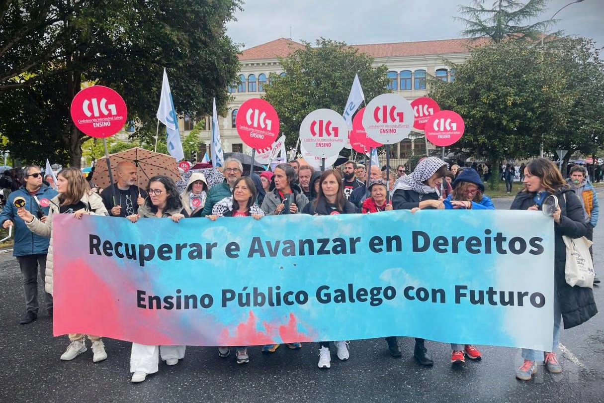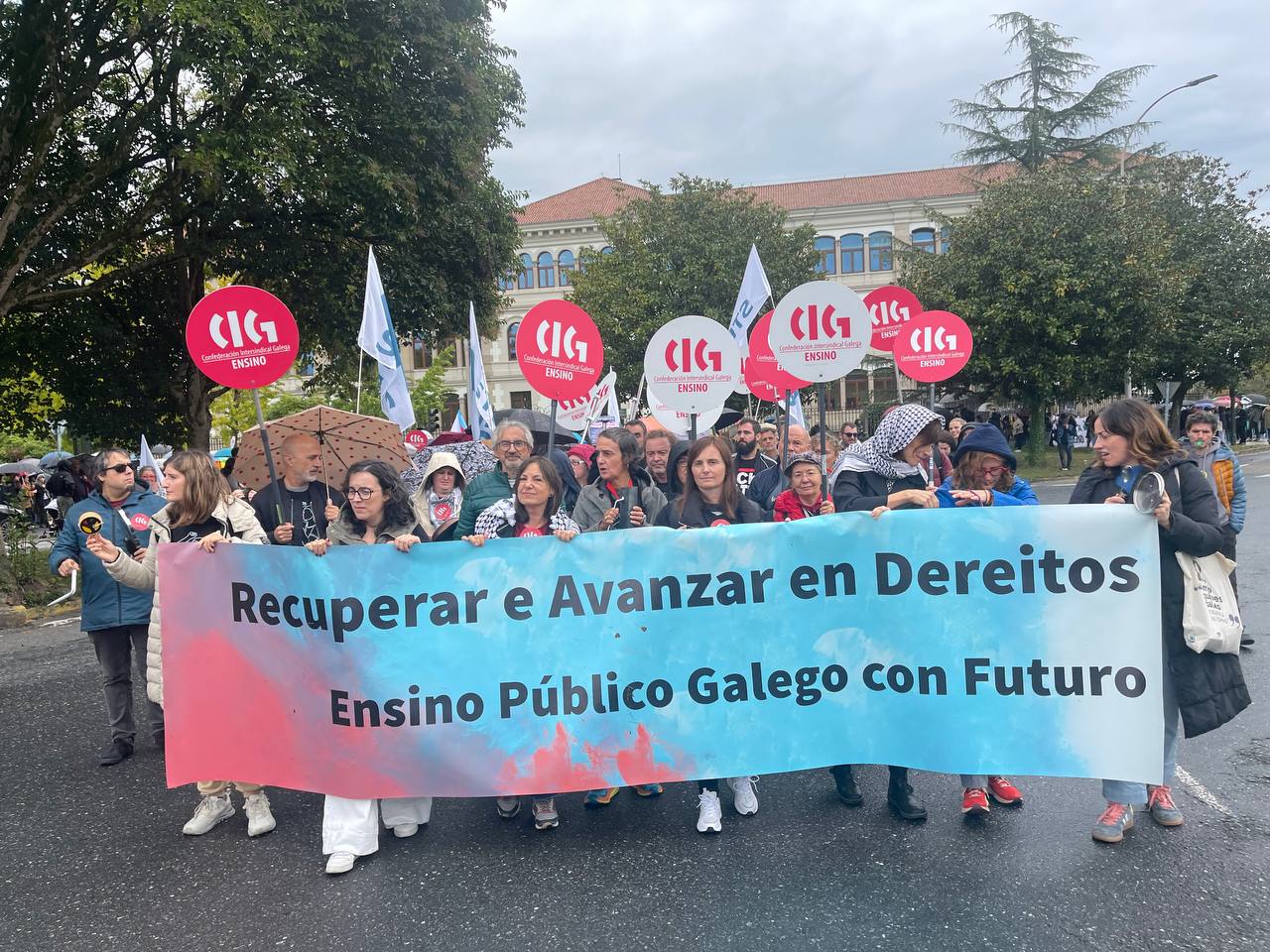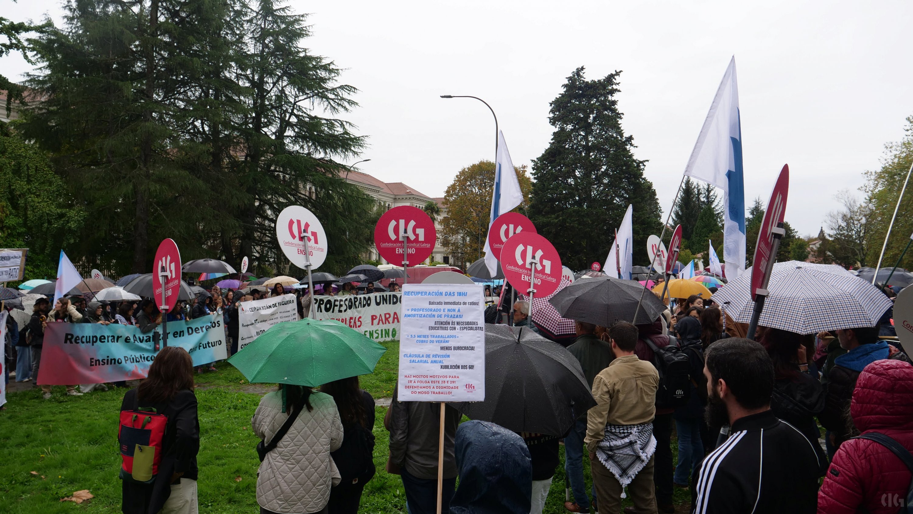En declaracións aos medios a secretaria nacional da CIG-Ensino, indicou que a asistencia á manifestación desta mañá volveu superar todas as previsións malia a choiva. Durante a mesma o profesorado asistente portou cabazas que foron depositadas diante do edificio da Xunta e protagonizou unha sonora protesta rodeando San Caetano para facer oír as súas demandas.